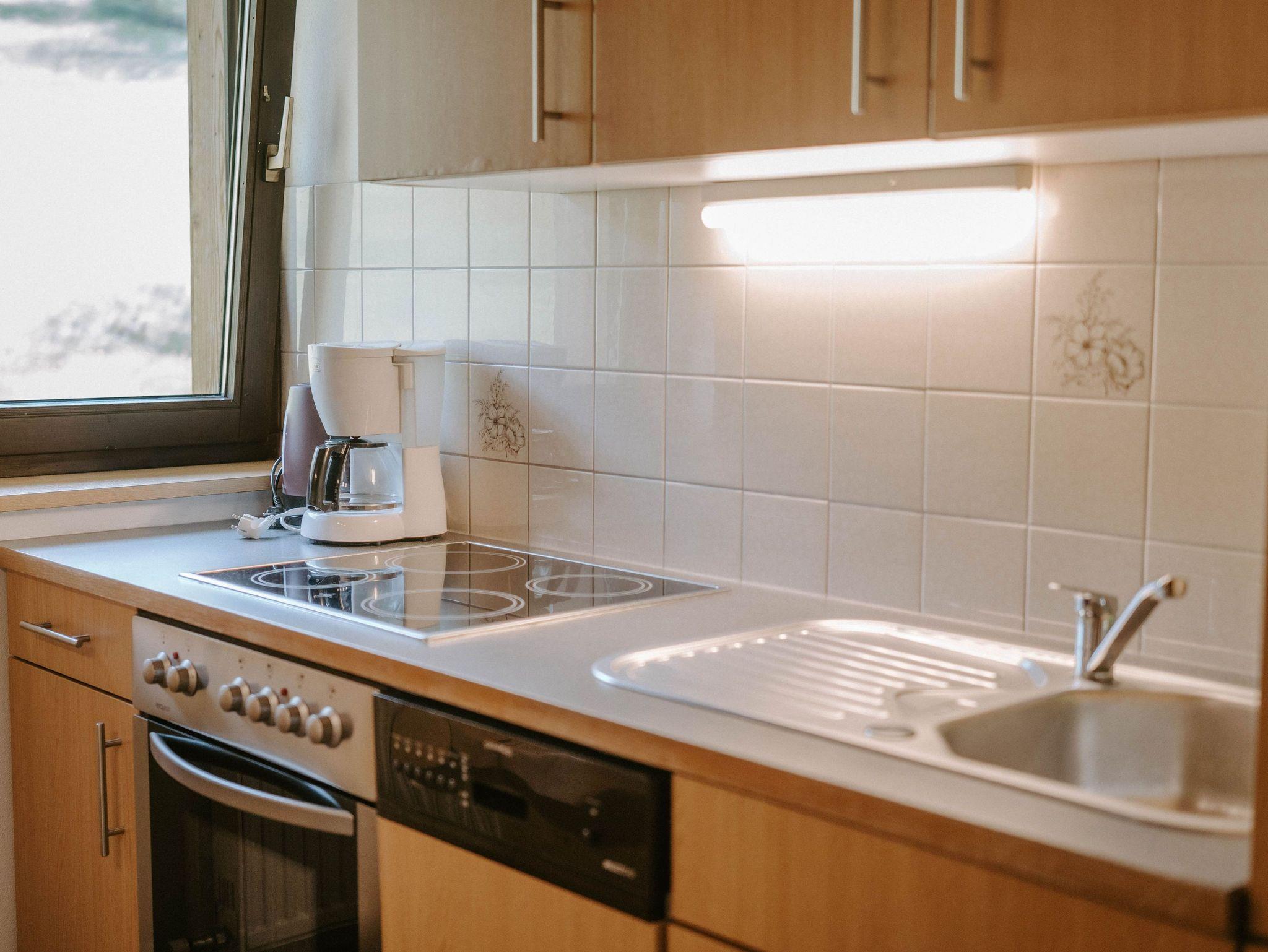 Geräumige Ferienwohnung im Dachgeschoss mit Schlafzimmer, Küche, Vorraum, Badezimmer und Balkon. Neben dem Doppelbett und dem Einzelbett gibt es bei Bedarf noch ein Reisegitterbett.