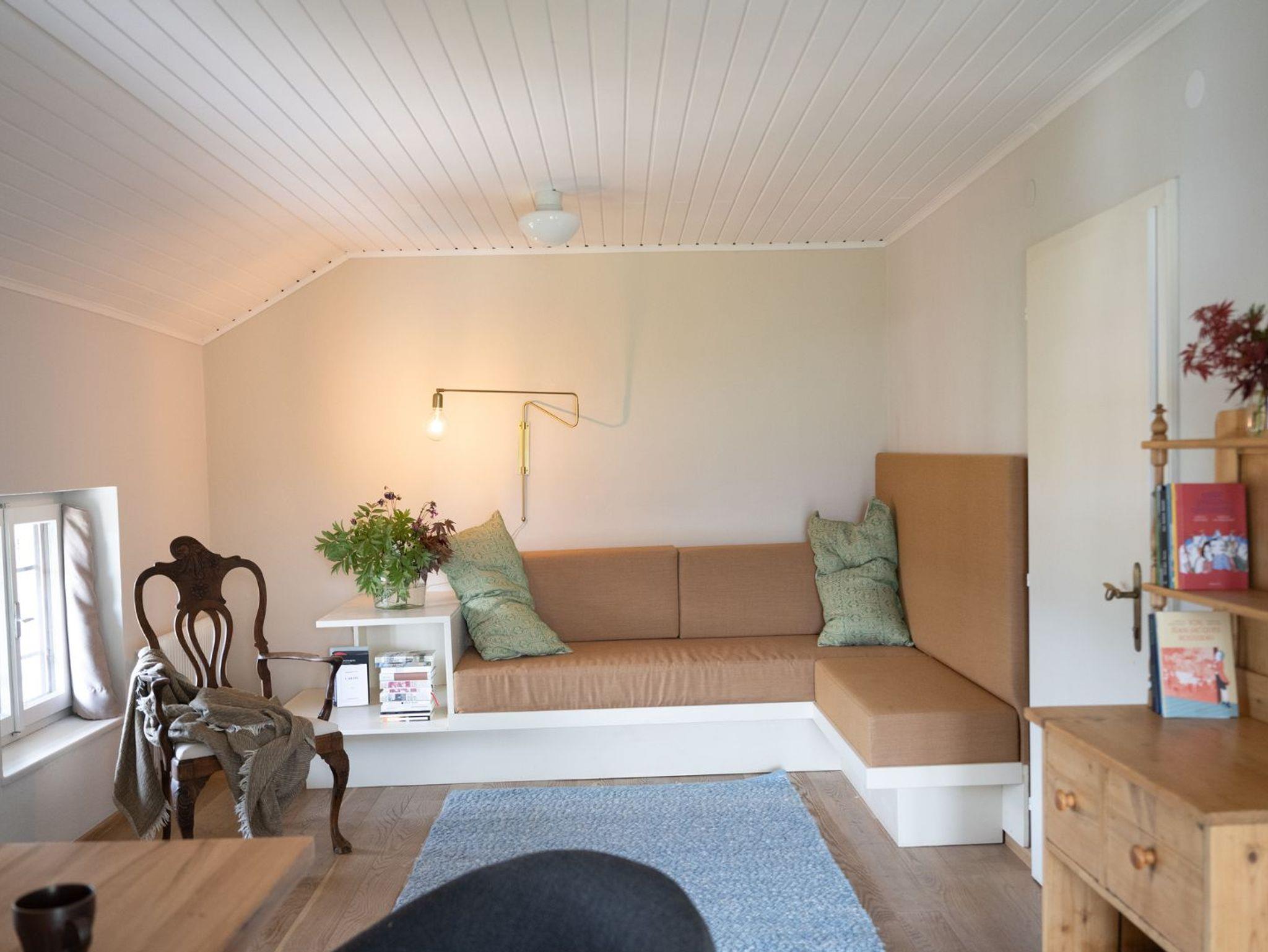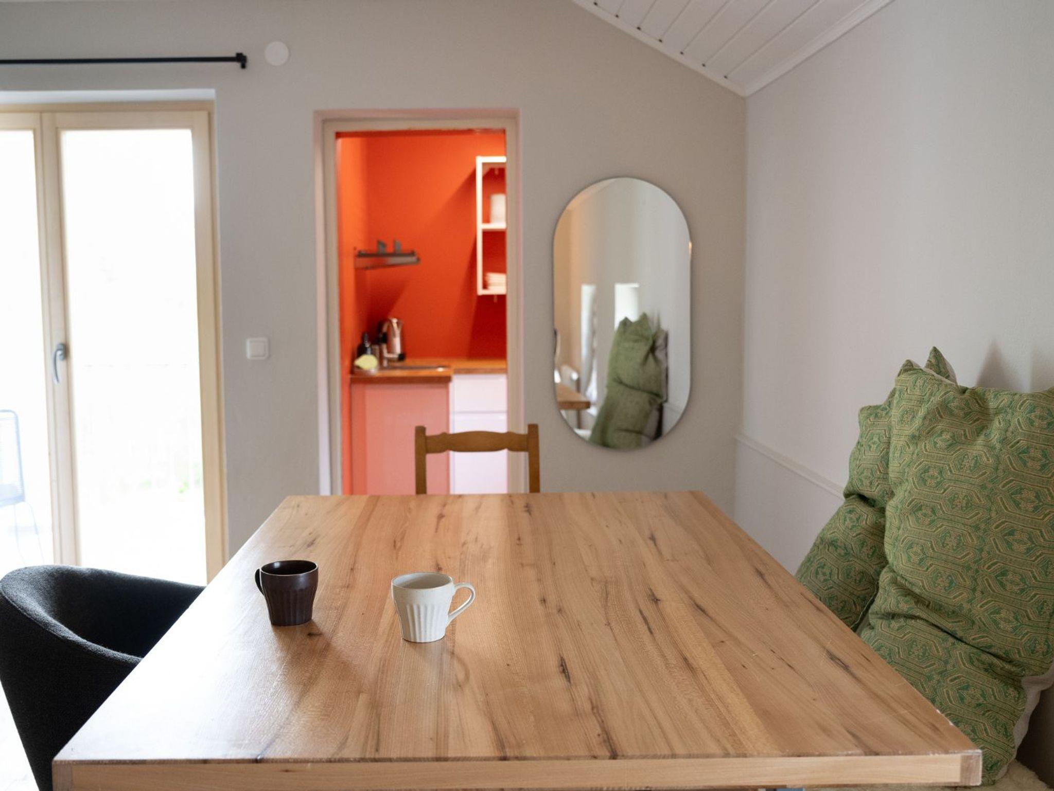 Elf neue, modern ausgestattete Ferienwohnungen, große Wiese für die Gäste direkt vor dem Haus, Frühstücksraum mit Produkten der Bauern aus der Umgebung, ausgewählte Bibliothek.