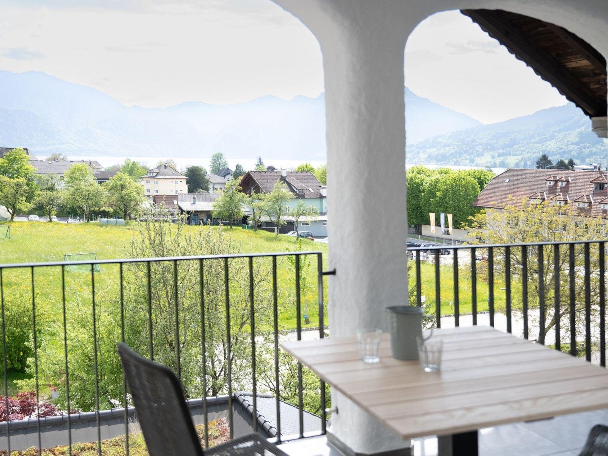 Neue, gemütliche Ferienwohnung mit großem Balkon mit Panoramablick. Schlafzimmer mit Doppelbett und Wohn-Schlafraum mit Essbereich und einer bequemen Schlafcouch. Teeküche mit Kühlschrank und Doppelherdplatte.