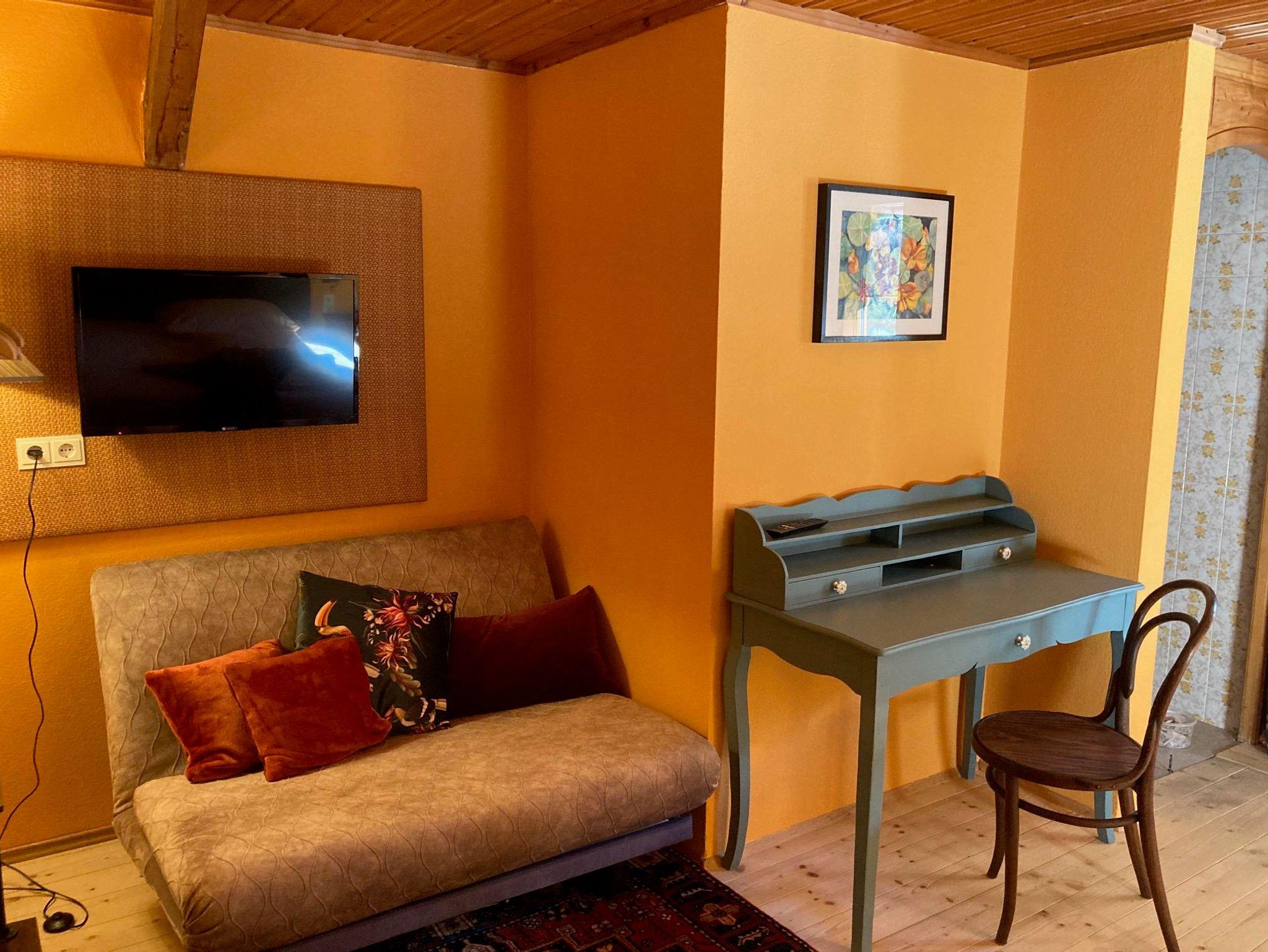 Unsere Zimmer sind mit den Vollholzmöbeln unserer Großeltern ausgestattet. Holzboden, Schlafsofa und TV. Dusche/WC getrennt.