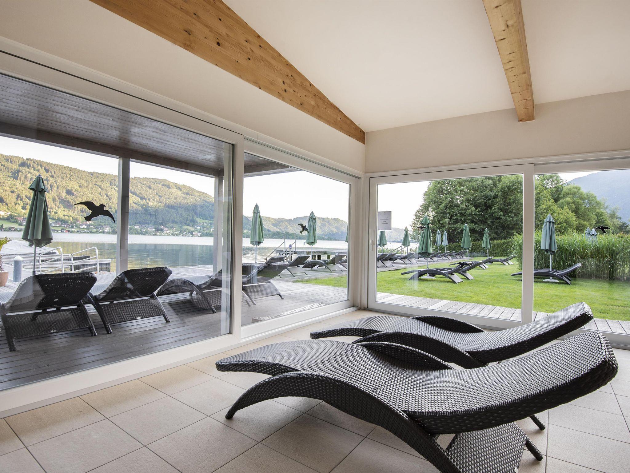 Darüber hinaus bieten wir eine idyllische und direkte Lage an einem der schönsten Badeseen in Kärnten, zahlreiche Freizeitaktivitäten, Wellnesseinrichtung und einen Saunapavillon am See für energetische Momente des Entspannens.