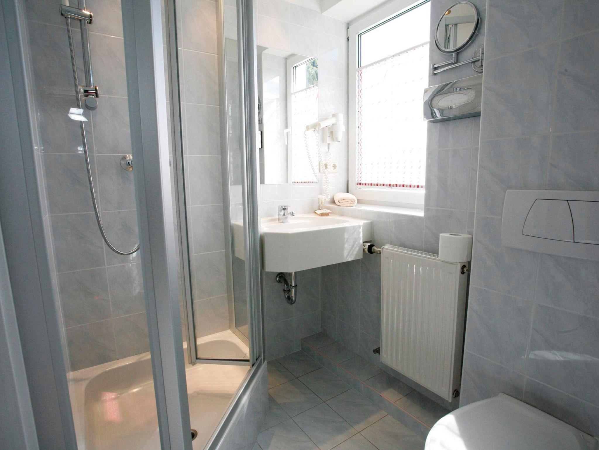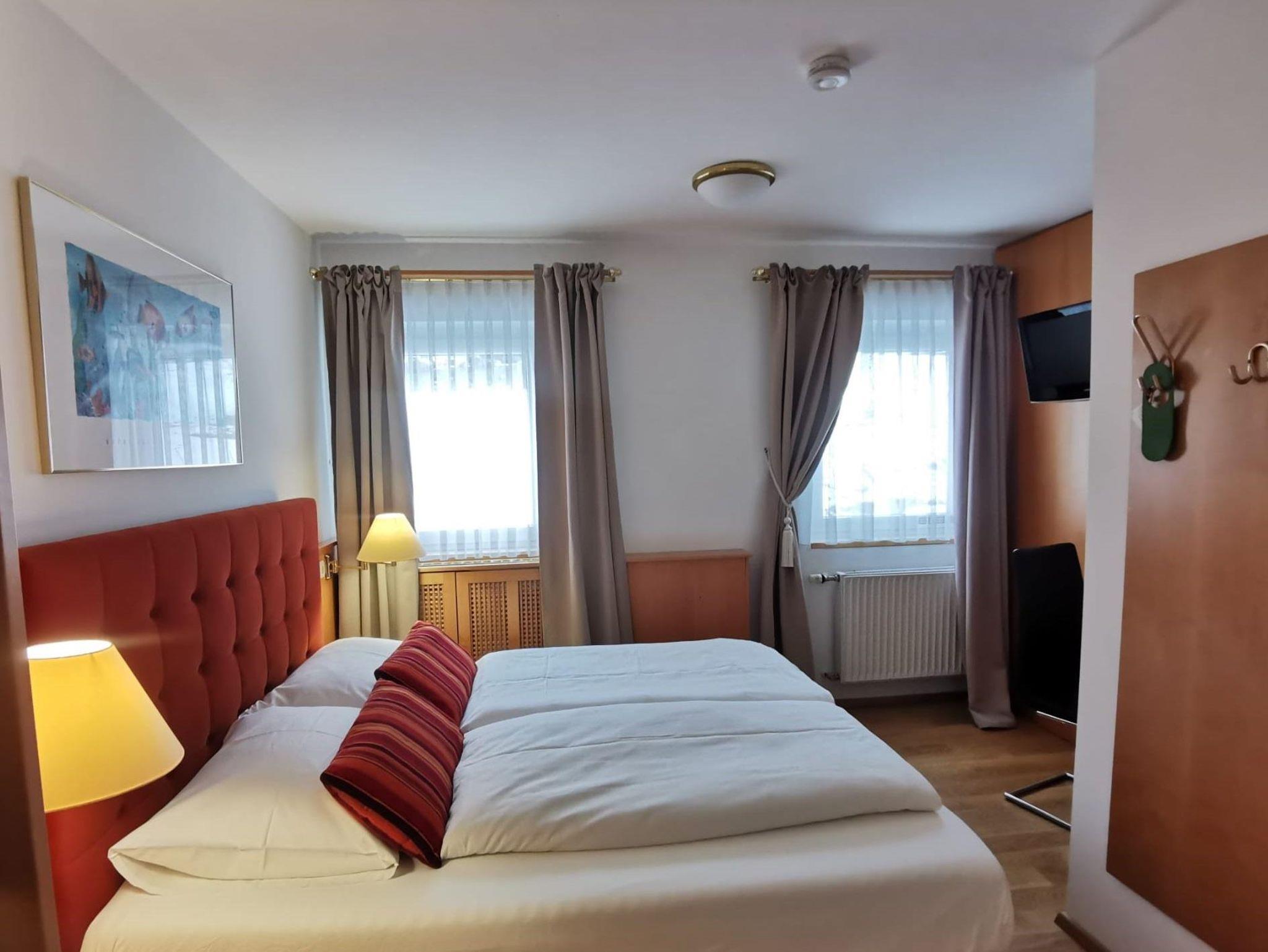 Nordseitiges Doppelzimmer ohne Balkon mit Dusche/WC, TV, Radio, Zimmersafe und Wlan.
