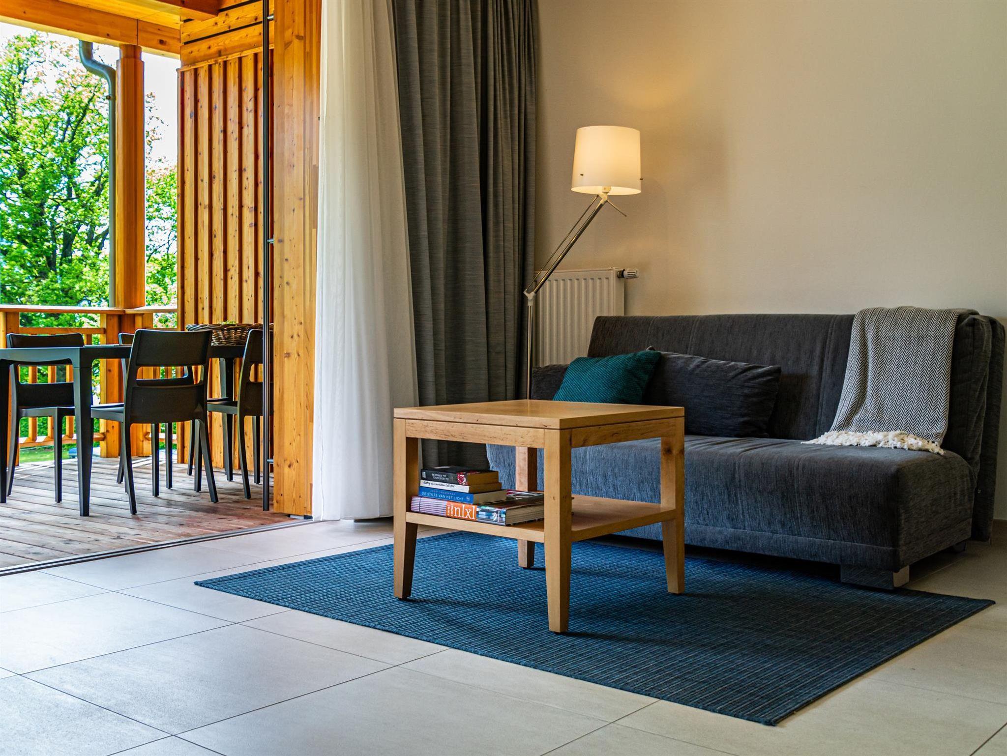 Bleistätter Haus Apartment 40m2. Das Haus ist in moderner See-Architektur gebaut. Das Apartment hat einen geräumigen lichtdurchfluteten Wohnraum mit Schlafcouch Möglichkeit, Küche mit Geschirrspüler, E-Glass Kochplatte, Mikrowelle, Kühlschrank, Esstisch, gemütliche Sitzecke mit Leselampe, 1 kleines Schlafzimmer (Bett 160x200), Badezimmer mit Dusche. Großer überdachter Wohnbalkon in Süd-Ostlage mit Gartenmöbel und Blick auf das Naturschutzgebiet Bleistätter Moor, Tiebel-Fluss Gebiet und Teilweise auf unseren Campingplatz. In ein bis zwei Minuten spazieren sie über unsere eigene Anlage zum See.