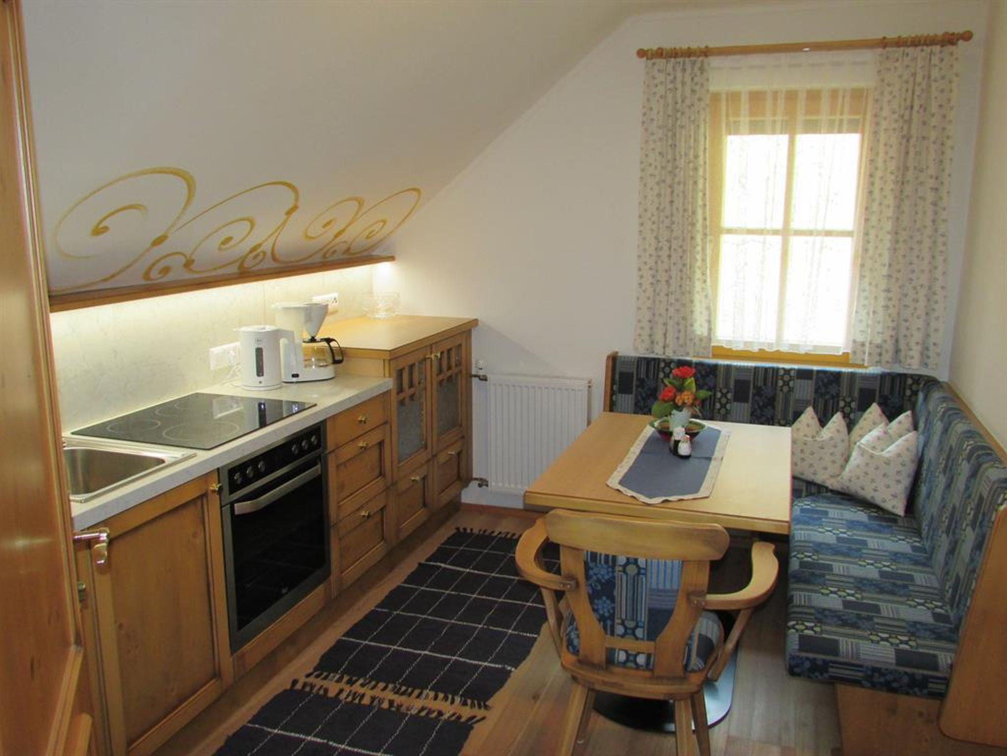 50 m2 Wohnfläche im 2. Stock laden ein zum Wohlfühlen. Die Ferienwohnung bietet Platz für 2 bis 3 Personen und ist ausgestattet mit Fichtenholzmöbeln und Holzböden, kleine Wohnküche mit gemütlicher Sitzecke, Kühlschrank, Mikrowelle, Kaffeemaschine, Wasserkocher, E-Herd mit Backrohr, Geschirrspüler, 2 getrennte Doppelbettzimmer und Einzelbettzimmer, Flachbildschirm mit SAT-TV, Radio, gratis W-LAN, Dusche und WC, Fön, Süd - Balkon mit Sitzgelegenheit und Hängesessel.