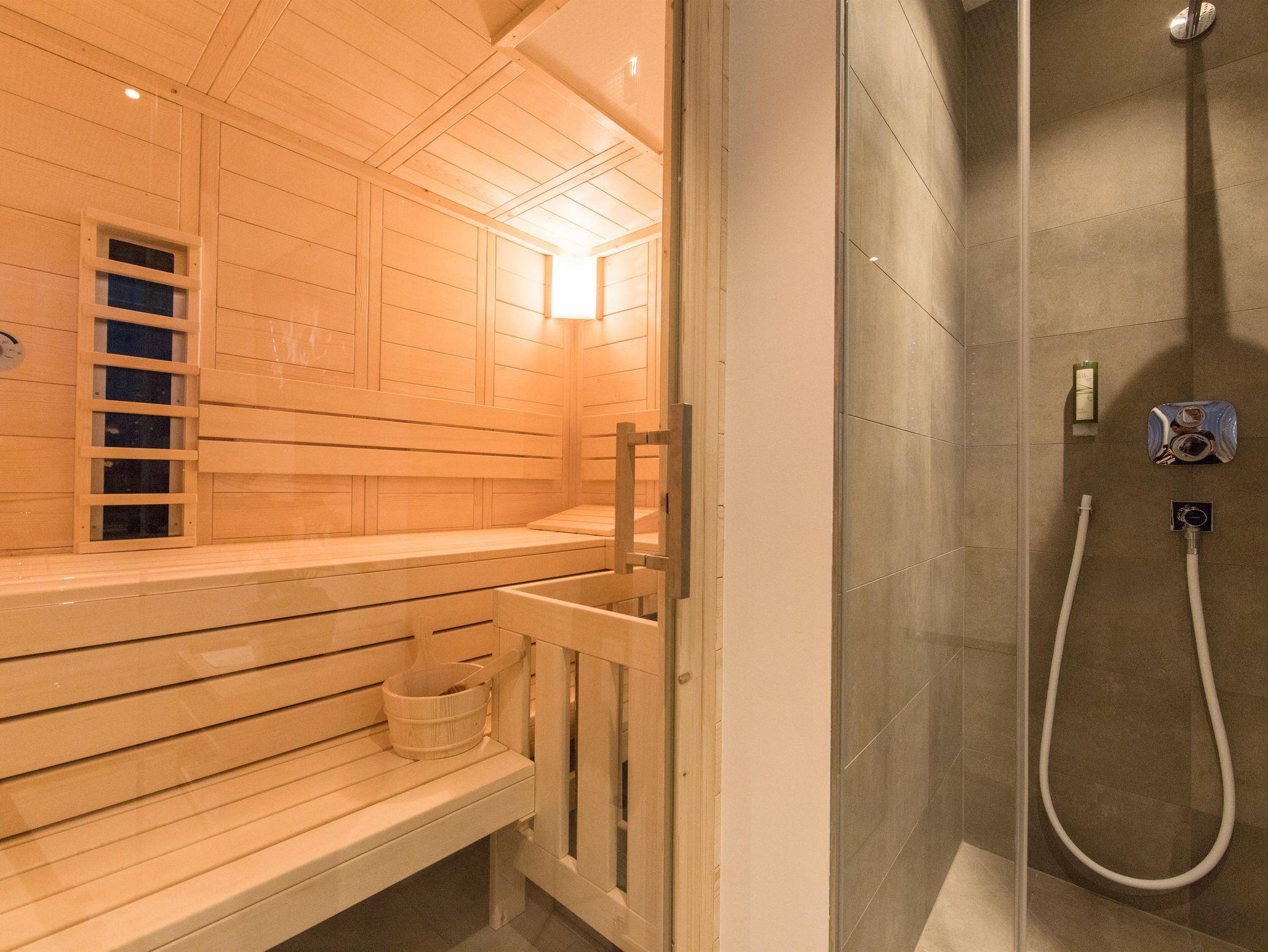 Wellnesssuite mit ca. 55 m² Wohnraum und 13 m² Balkon - Finnsauna mit Infrarotfunktion, Whirlwanne und Erlebnisdusche