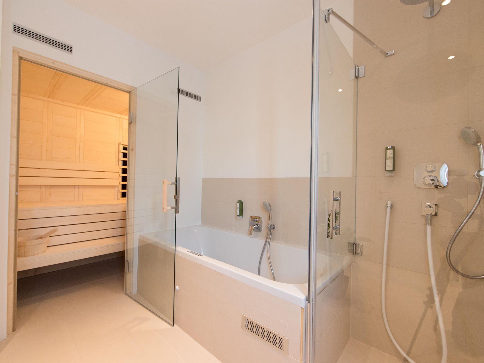 Ausstattung: Vorraum, Küchenblock mit Kühlschrank, Wohnbereich mit Esstisch und Sofa, abgetrennter Schlafbereich, Badezimmer mit Erlebnisdusche, Haarfön, Kosmetikspiegel, abgetrenntes WC, Wohnraumlüftung, Schreibtisch, Flat-TV, Internet, kostenloses Highspeed WLAN und Safe.