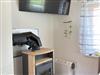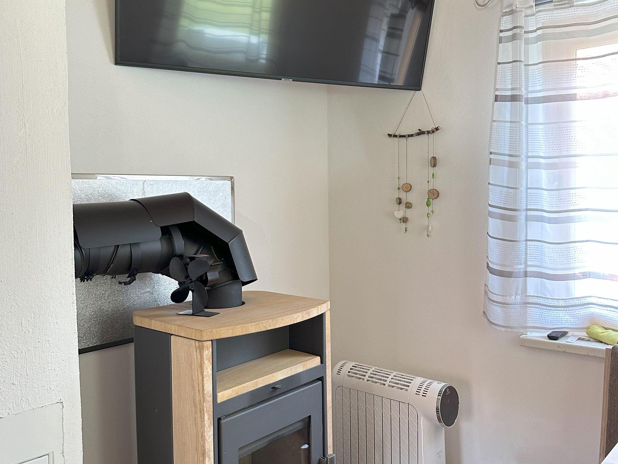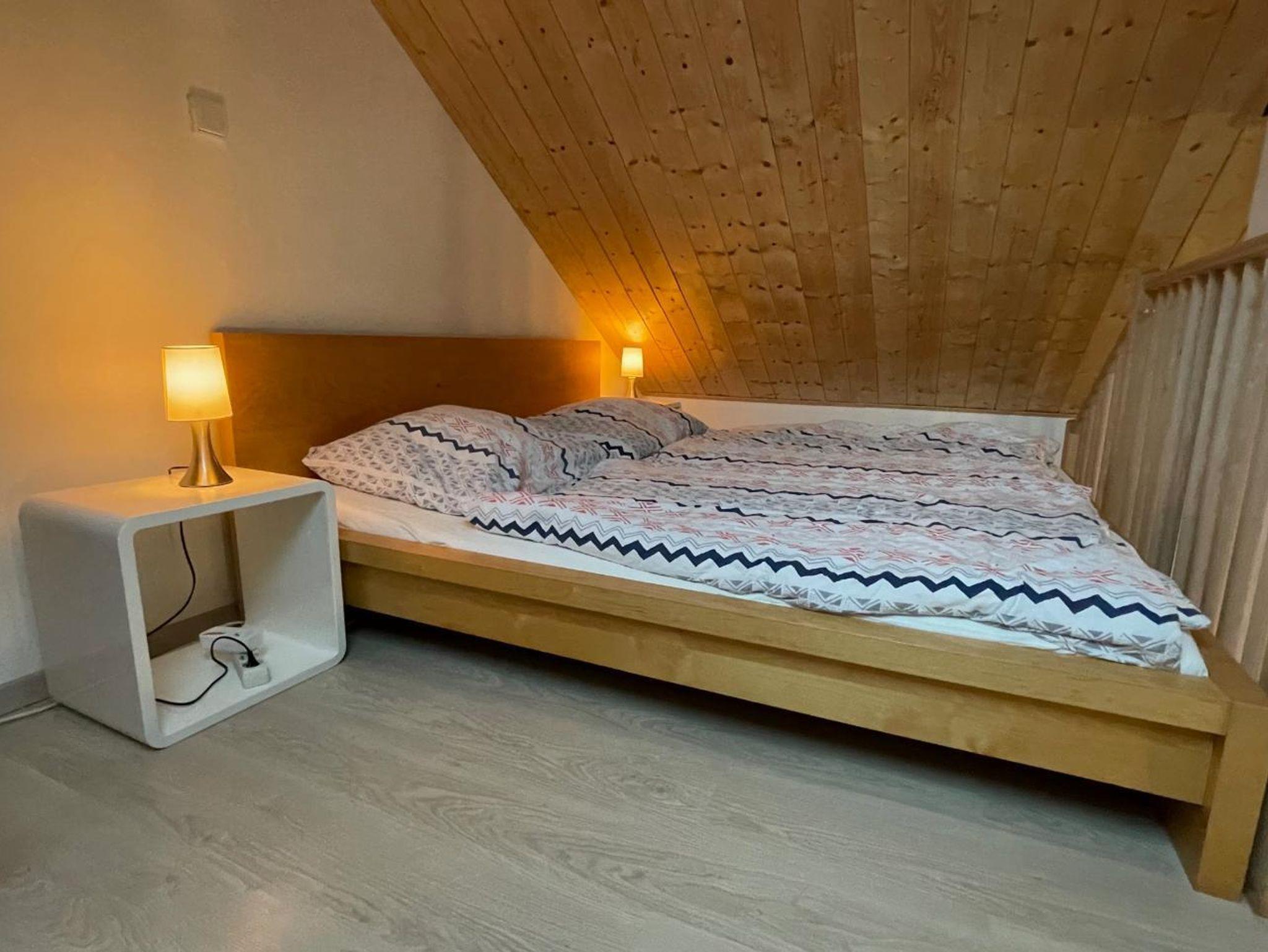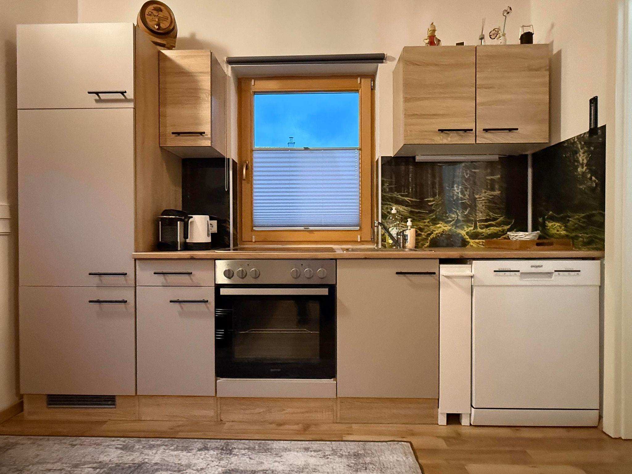 Der Wohnbereich umfasst eine vollausgestattete Küchenzeile (Külschrank mit Gefrierfach, Ceranfeld, Backrohr, Geschirrspüler, Nespressomaschine, Wasserkocher, Toaster), Eckbank, Ausziehbares Sofa und Kaminofen. Das Schlafimmer ist mit einem ausziehbaren Doppelbett (200 x 180 cm) und einem kleinen Schrank ausgestattet. Das kleine Badezimmer ist zweckmäßig eingerichtet mit einer Dusche, WC, Waschbecken und einem Handtuchtrockner ausgestattet.