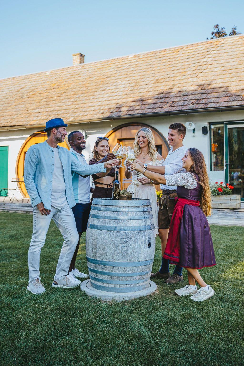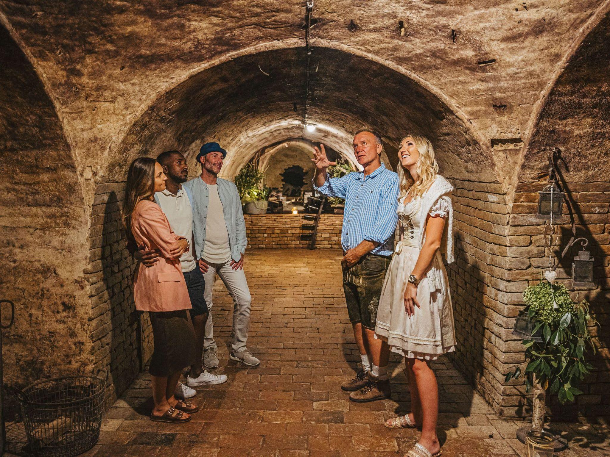 You can experience life on the wine-growing estate directly and authentically and take part in wine tasting in the 300-year-old cellar vault. In the morning you can enjoy breakfast in the light “Weinviertler Stubn”. It is an ideal hiking and cycling area, characterised by many castles. There are ideal shopping facilities in Vienna (30km away) and Bratislava (40km away).