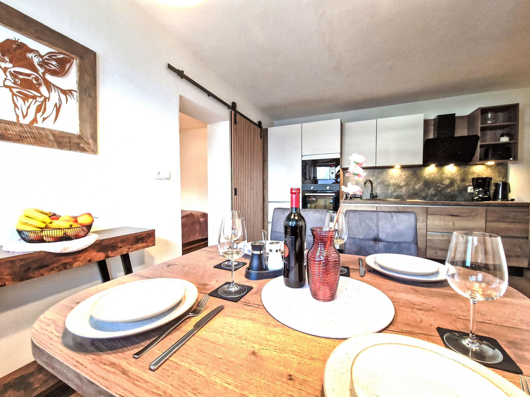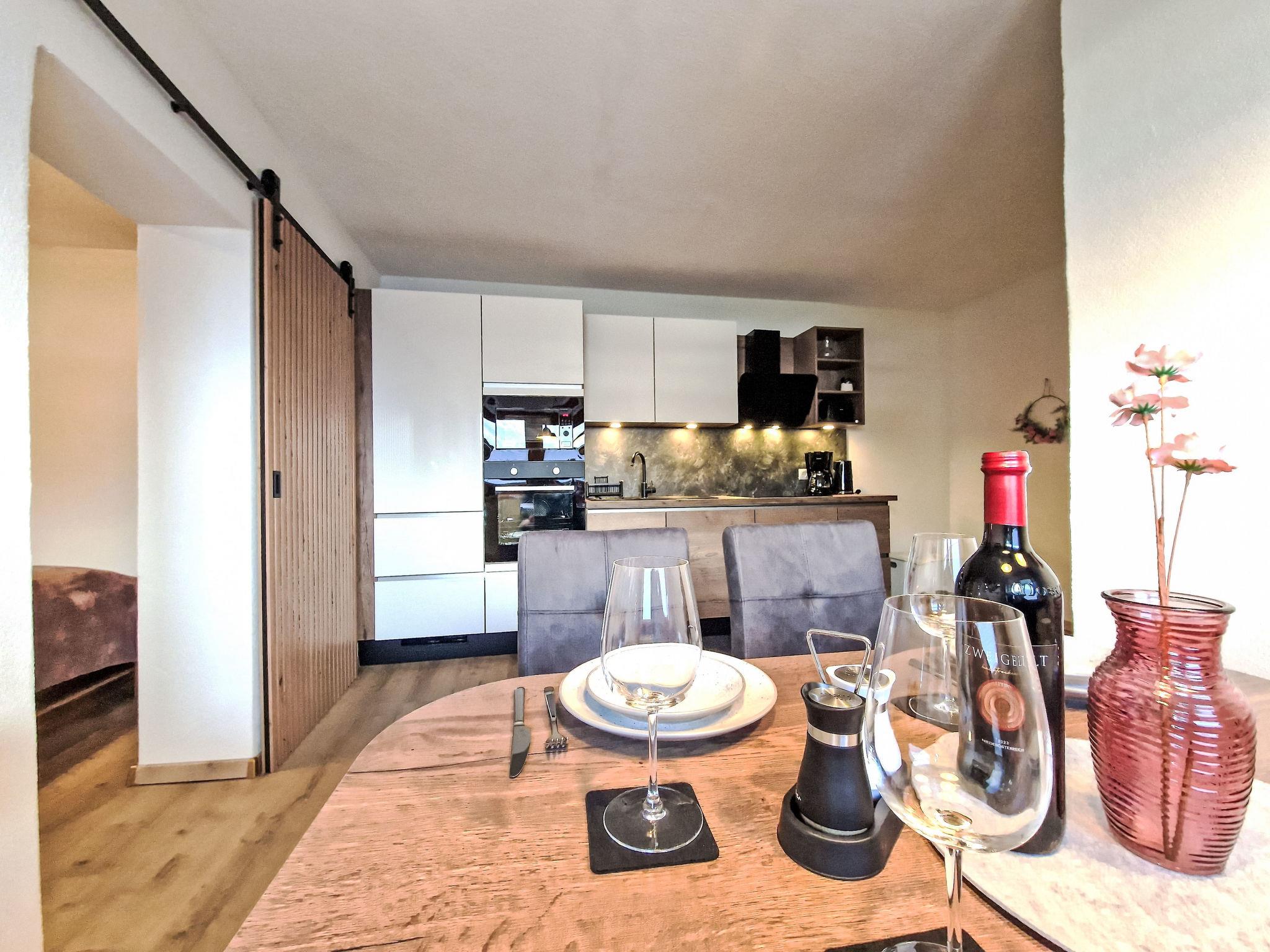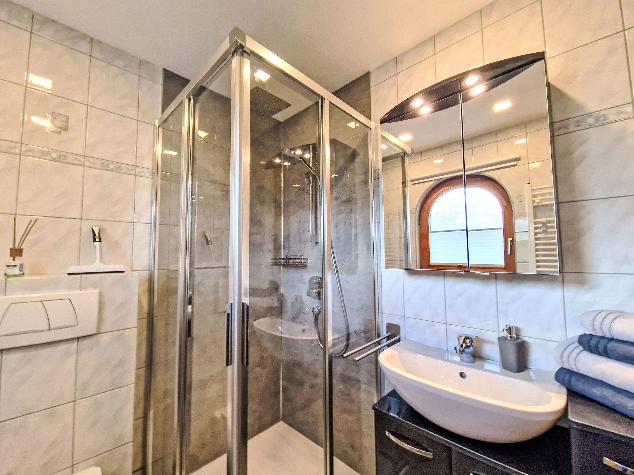 "August", 3-room apartment 60 m2, on the lower ground floor. Very comfortable and cosy furnishings: 1 double bedroom with TV (flat screen). 1 room with 2 beds and TV (flat screen). Kitchen-/living room (oven, dishwasher, 4 induction hot plates, toaster, kettle, microwave, electric coffee machine) with dining table. Shower/WC. Oil heating. Terrace. Terrace furniture, deck chairs (2). Very beautiful view of the mountains. Facilities: Internet (WiFi, free). Please note: non-smokers only. Smoke alarm, fire extinguisher.