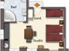 • 1 Wohn-Schlafzimmer mit einem bequemen Doppelbett