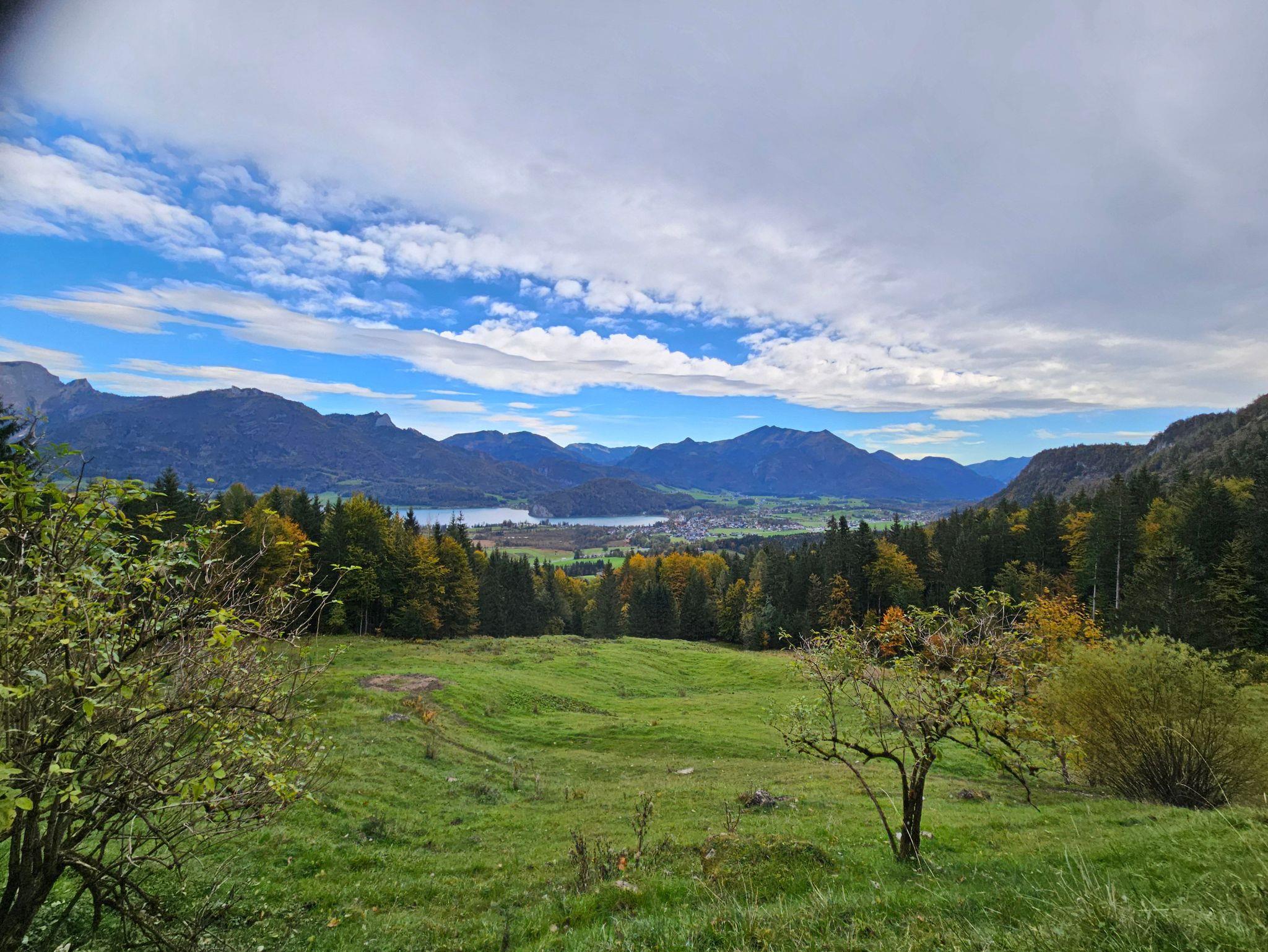 Eine große, lichtdurchflutete sowie großzügig ausgestattete Ferienwohnung PARIS mit großem Panoramafenster mit Blick in Richtung Wolfgangsee und Schafberg.
