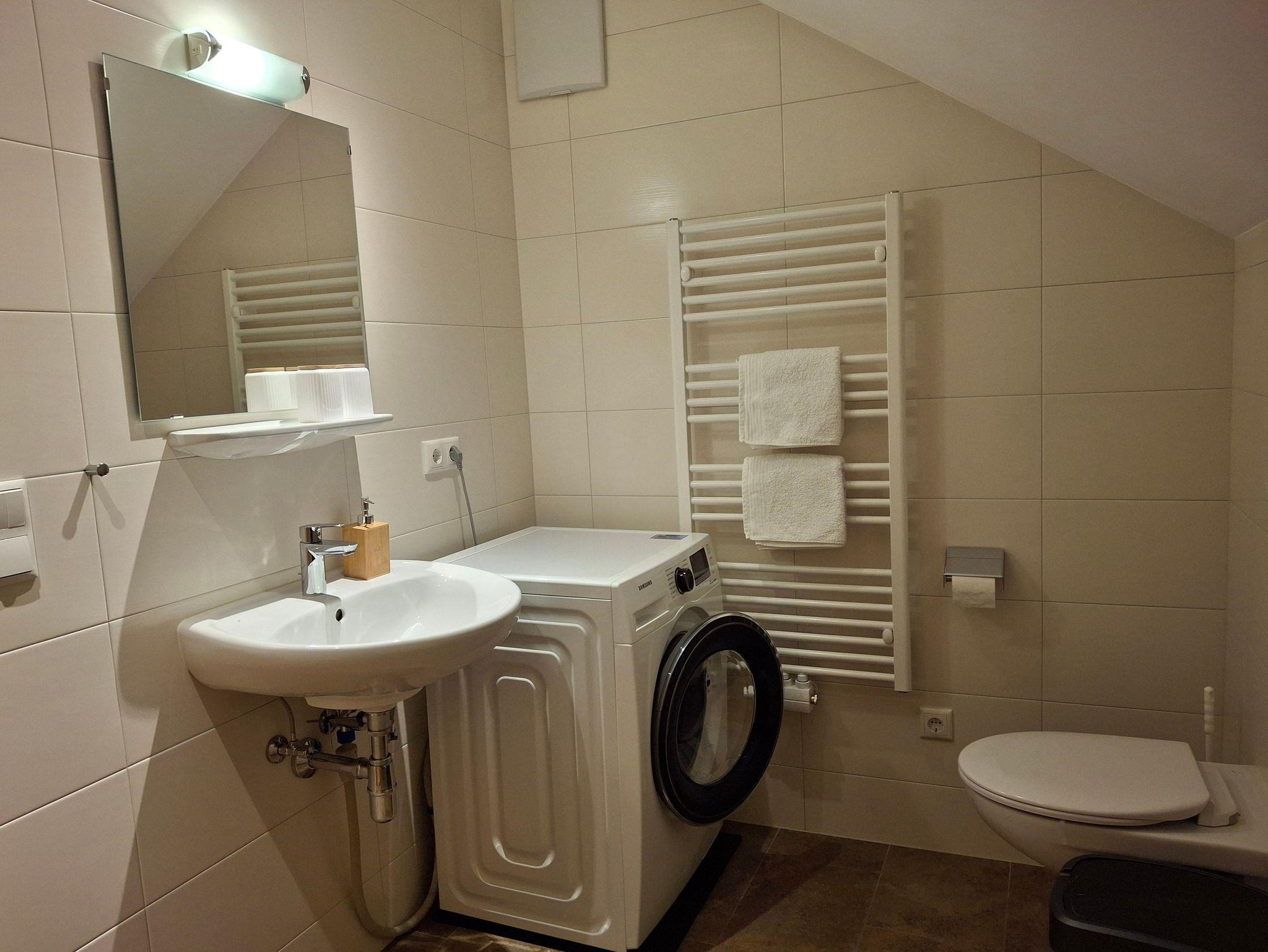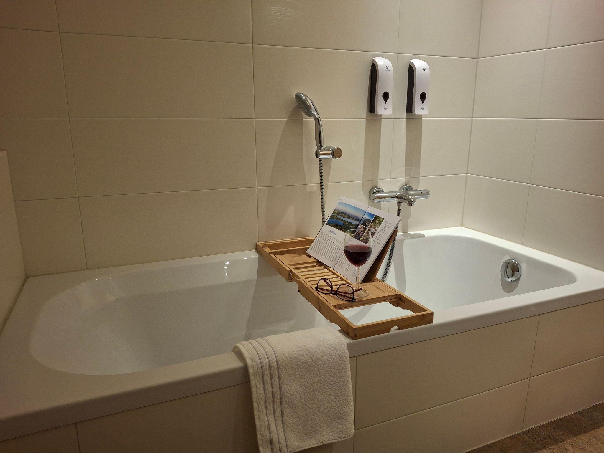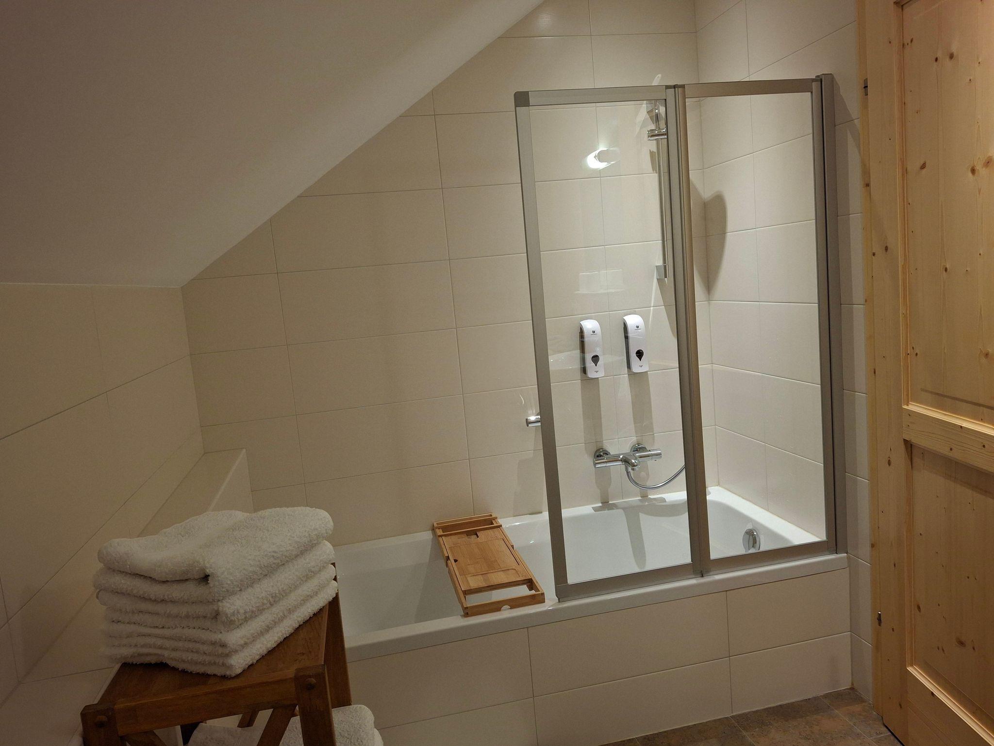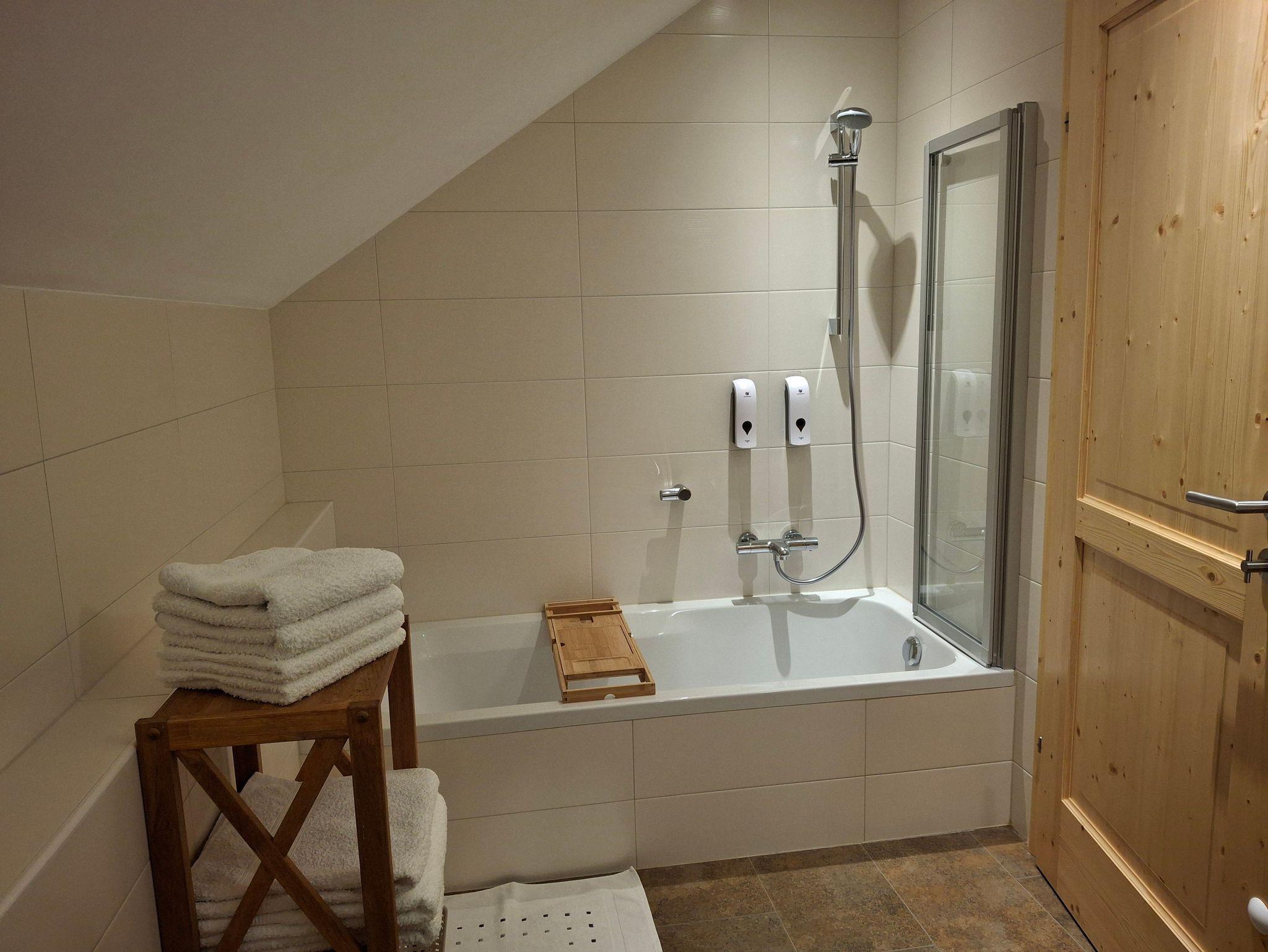 Im Bad finden Sie 2 Druckspender mit Duschgel und Haarshampoo.