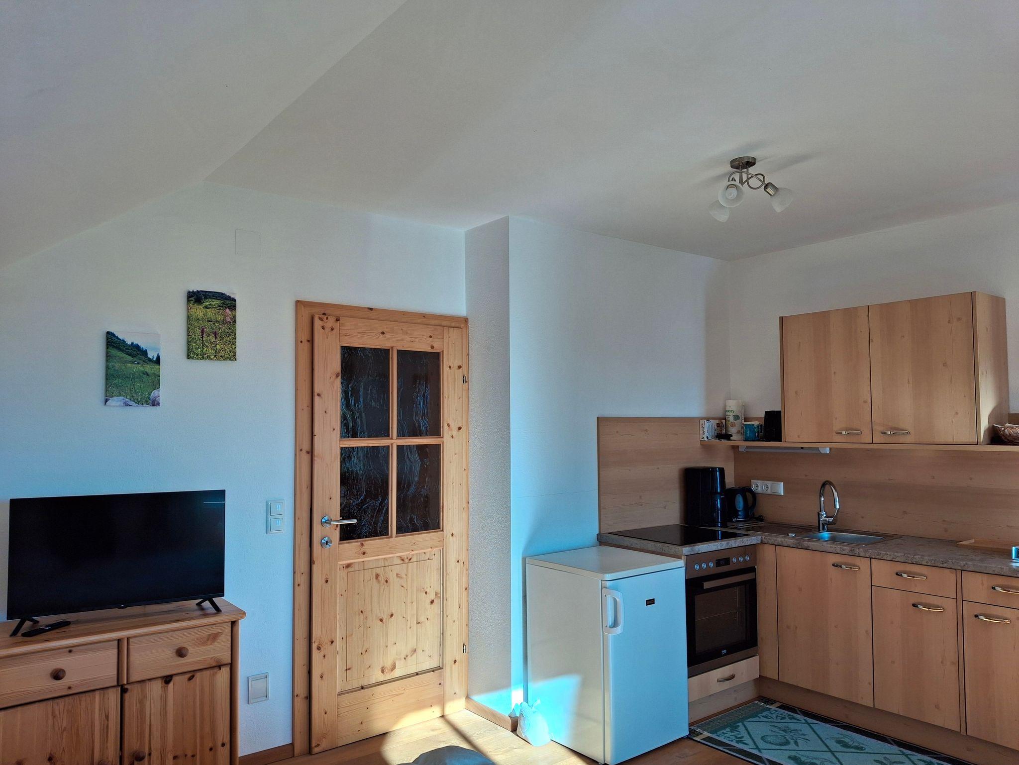 Die Ferienwohnung verfügt über eine Küche inkl. Kühlschrank mit Gefrierfach, E-Herd, Wasserkocher, Filterkaffeemaschine und Utensilien zum Kochen und Essen. (Töpfe, Pfannen, Gedeck usw.)
