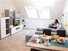 The apartment completed in 2016 is on the upper floor of a two-storey single-family house and provides 60m² of living space. Two to four people can enjoy the pleasant atmosphere exuded by the attractive interior, comprising rooms flooded with daylight, light furniture and natural wood colours. After the entrance, there are stairs directly to your apartment, which consists of an entrance area, a double bedroom, a sociable living room-kitchen, a storage room and a modern shower room with a WC. The bedroom promises a good night’s sleep with a double bed (180 x 200cm), a wardrobe and a little dresser also for a laptop. The two skylights above the bed invite you to fall asleep under a starry sky if you leave the blinds open. The centrepiece of the apartment is the living and dining room with an integrated kitchen. After a day trip, you can relax on the large and comfortable sofa. Satellite TV provides entertainment. The sofa can be used as a bed for a child as a third person. There is also a child’s bed. Next to the suite, you go past the dining table with four high-backed chairs to the open kitchen space, fully-equipped for practical self-catering: induction hob, microwave, oven, large fridge and freeze, dishwasher, coffee machine, kettle and toaster.