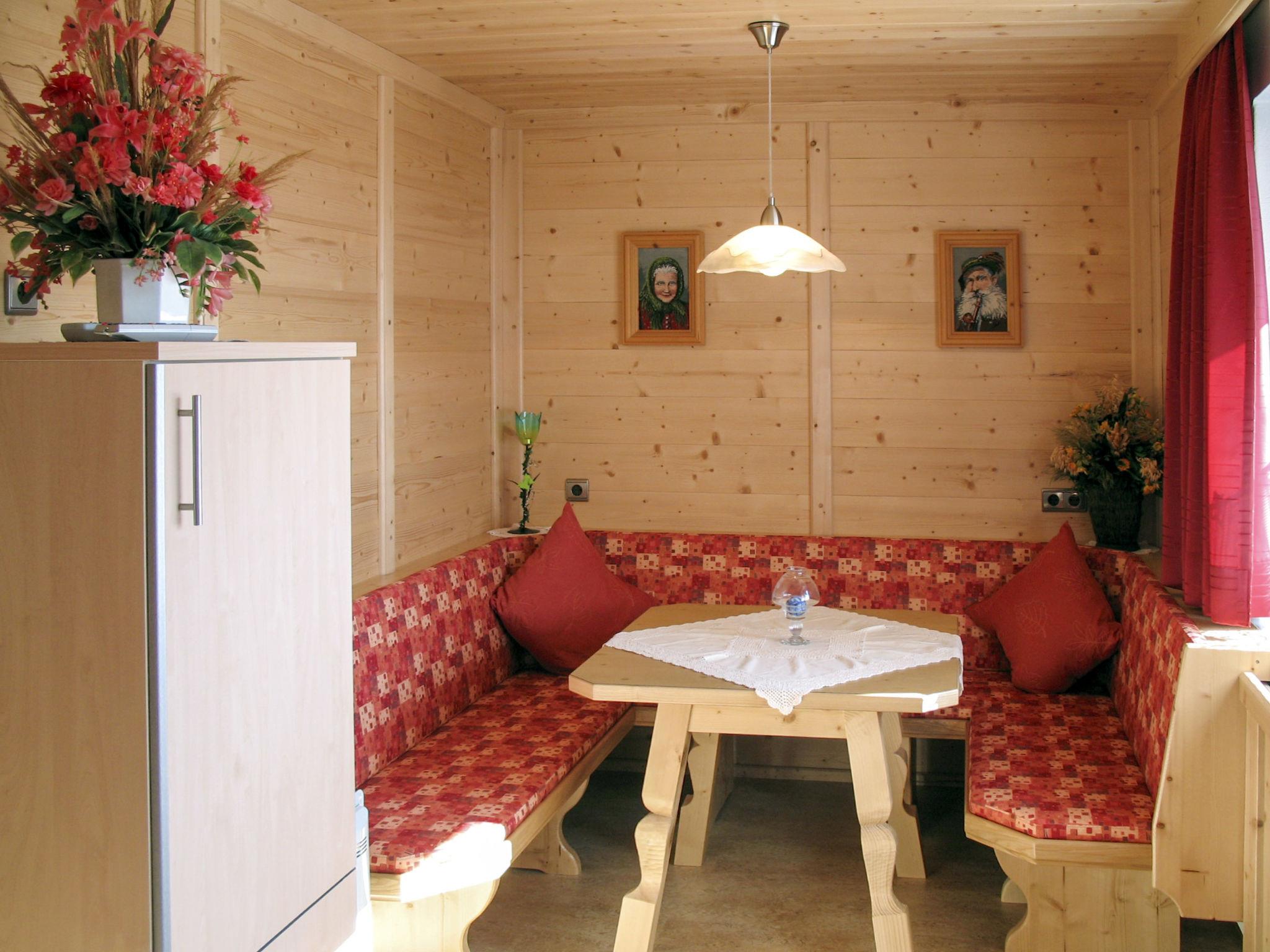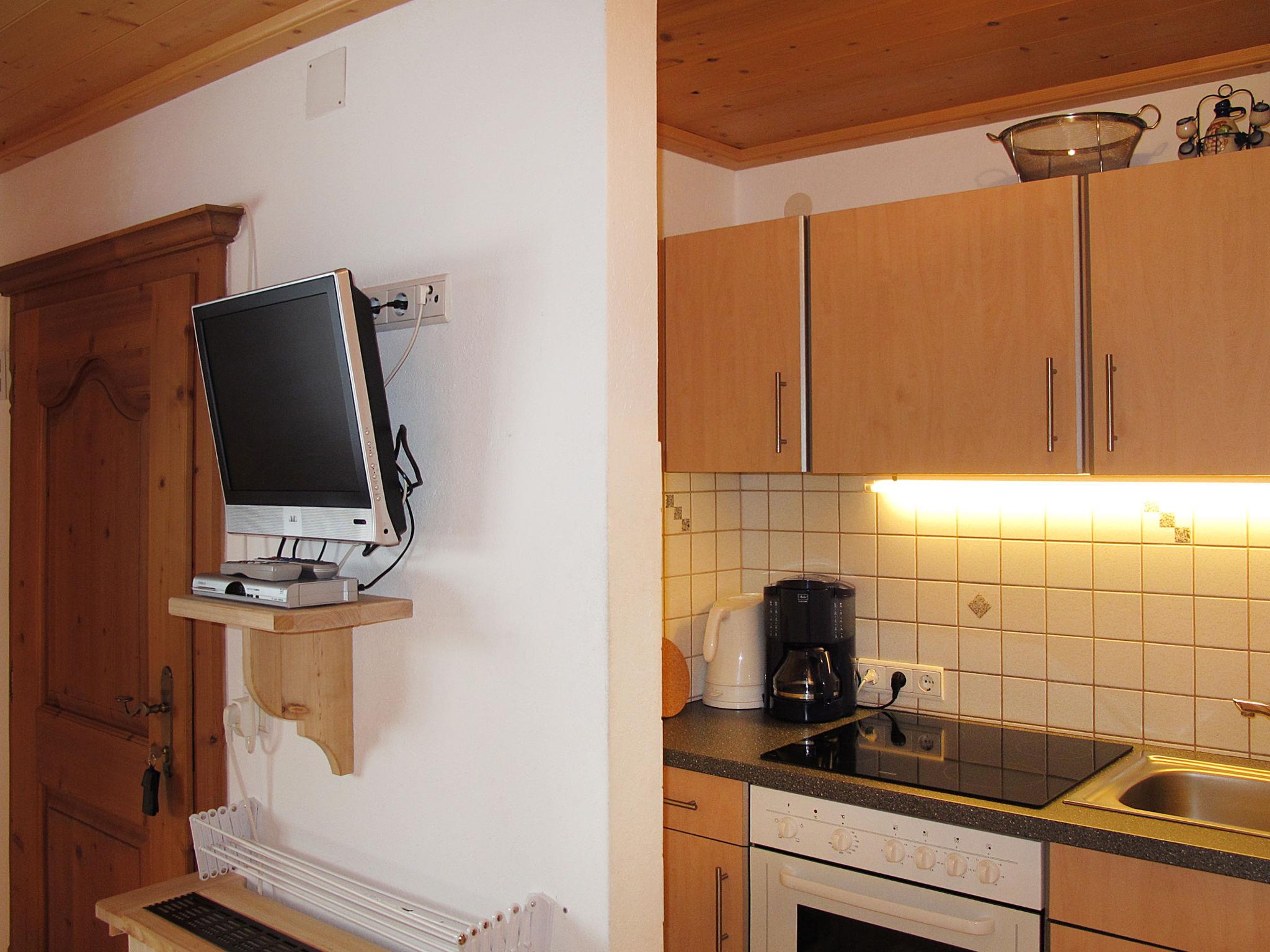 "Moidl", 2-room apartment 35 m2 on 1st floor. Bright, wooden furniture furnishings: 1 room with 3 beds (80 cm, length 190 cm). Kitchen-/living room (oven, dishwasher, 4 ceramic glass hob hotplates, toaster, kettle, freezer, electric coffee machine) with dining table, dining nook and satellite TV. Shower/WC. Heating. Carpet. Balcony. Beautiful panoramic view of the mountains and the valley. Facilities: baby cot. Internet (WiFi, extra).