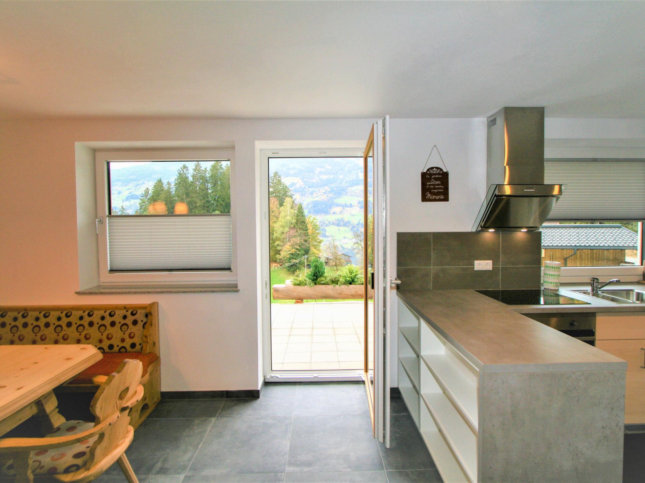 "Sonnigs Platzl", 3-room apartment 75 m2, on the ground floor. Very beautiful and tasteful furnishings: 1 double bedroom with 1 double bed. 1 room with 1 x 2 bunk beds, 1 double bed. Kitchen-/living room (oven, dishwasher, 4 ceramic glass hob hotplates, toaster, kettle, microwave, freezer, electric coffee machine) with dining table, satellite TV (flat screen). Shower/WC. Underfloor heating. Large terrace. Terrace furniture. Marvellous panoramic view of the mountains and the valley. Facilities: children's high chair, baby cot. Internet (WiFi, free). Please note: non-smokers only.