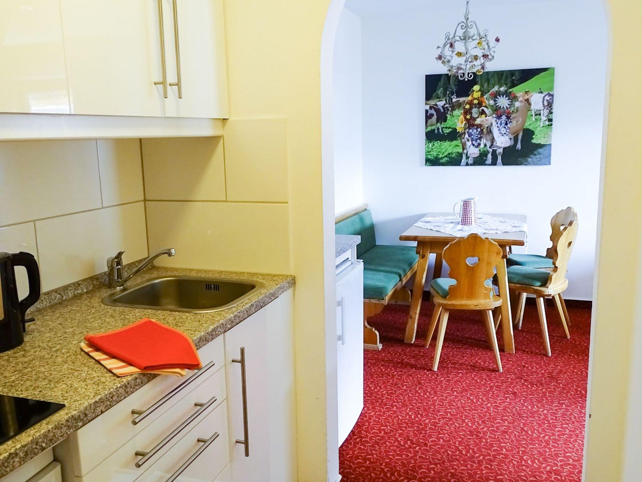 Im Aufenthaltsraum gibt es genügend Platz, um am Abend noch einmal gemütlich beisammen zu sitzen. Die Skier können im Skikeller mit elektrisch beheiztem Skischuhtrockner abgestellt werden. 1 kostenfreier Parkplatz pro Ferienwohnung ist direkt vor dem Haus. Ein Garagenplatz in der Tiefgarage kann auf Wunsch und Anfrage zusätzlich gebucht werden (3 Euro pro PKW und Tag, je nach Verfügbarkeit). Ein Hund pro Wohnung ist gegen Aufpreis willkommen.