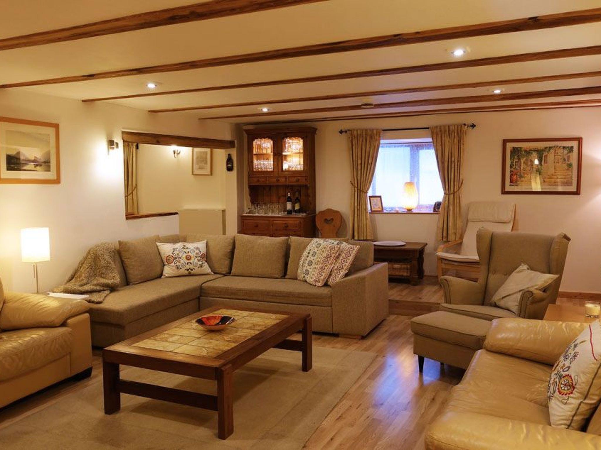 Step inside to find a homely and inviting interior, boasting four generously sized en-suite bedrooms on the first floor, equipped to accommodate extra beds or cots as needed. Each room comes with convenient amenities like an English extension lead, hair dryer, and under-floor heated modern bathrooms featuring drench shower units and heated towel rails. On the ground floor, unwind in the large lounge with a flat-screen TV, media center, and an assortment of books and games. A separate dining room, guest utility room with laundry facilities, and a heated equipment room for your outdoor gear add to your comfort and convenience.