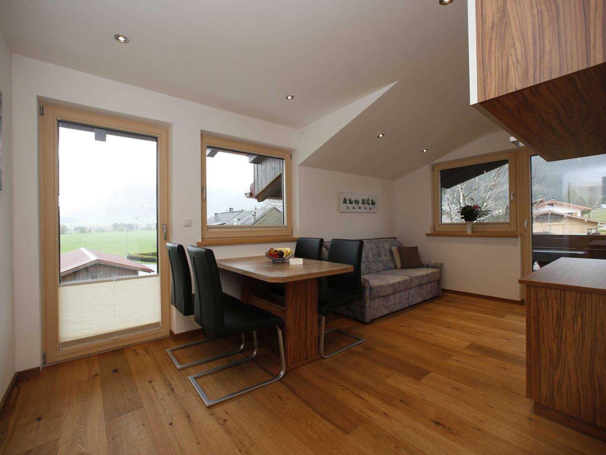 Unser modernes App. Buche liegt im 2.OG und ist ca. 40 m² groß, im Wohnbereich der mit hochwertigem Parkett ausgelegt ist befindet sich eine gemütliche Essecke, sowie eine Sofa. Die Küchen ist mit 4 - Platten Ceran - Herd und ein Backofen, sowie einer Mikrowelle ,Spülmaschine und sonstigem Zubehör ausgestattet. Es ist ausreichen Geschirr vorhanden. Für mehr als 2 Gästen bietet die Doppelausziehcouch angenehmen Schlafcomfort. Weiters verfügt App. Buche über 2 Balkonen mit traumhafter Aussicht.