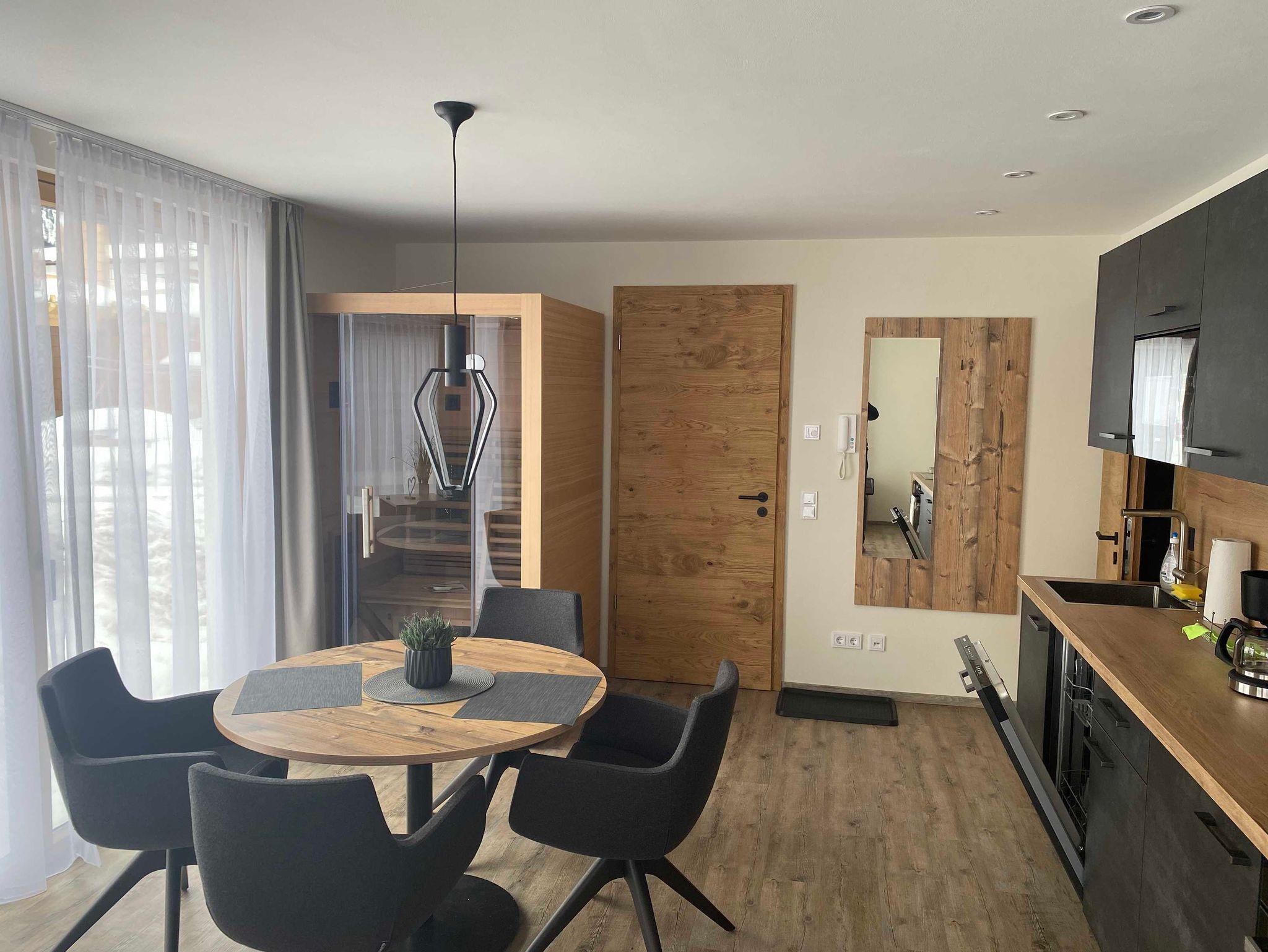 Sie blicken direkt in die umliegende Bergwelt und genießen den Komfort unserer hochwertig ausgestatteten Ferienwohnungen im rustikal-modernen Alpin-Style.