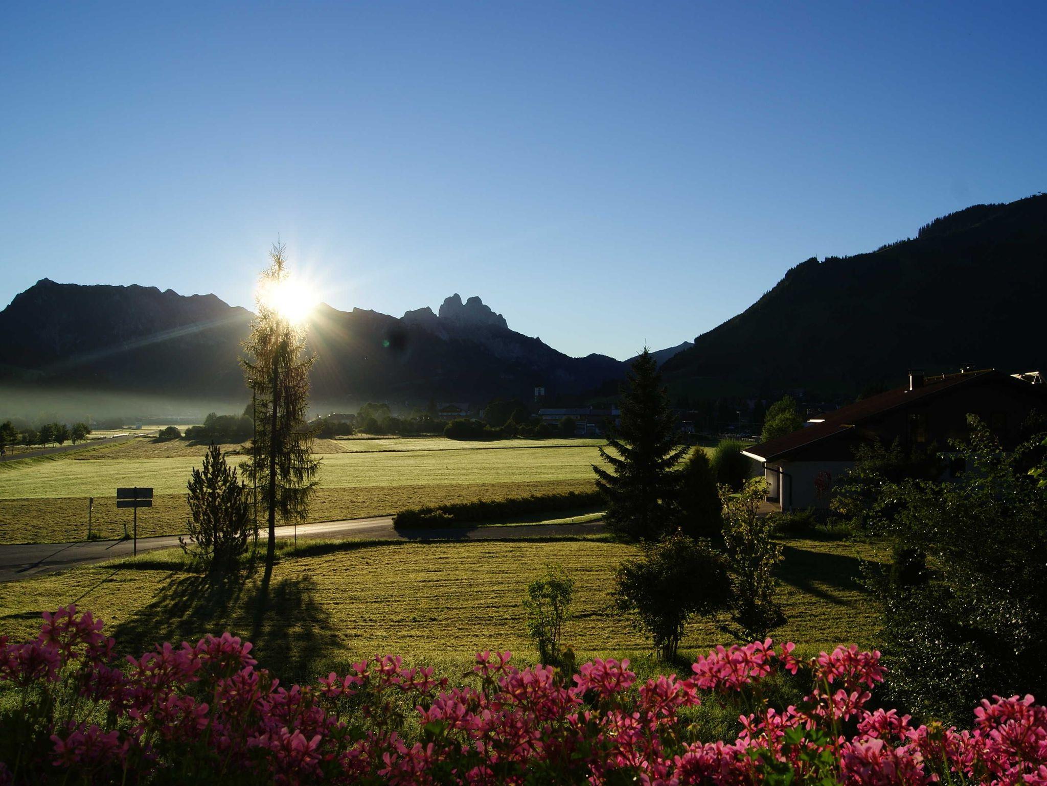 Exklusives Ferienhaus, sehr ruhig auf der Südseite von Tannheim. Ringsum nur Wiesen und ein herrlicher Blich aufs Geisshorn.