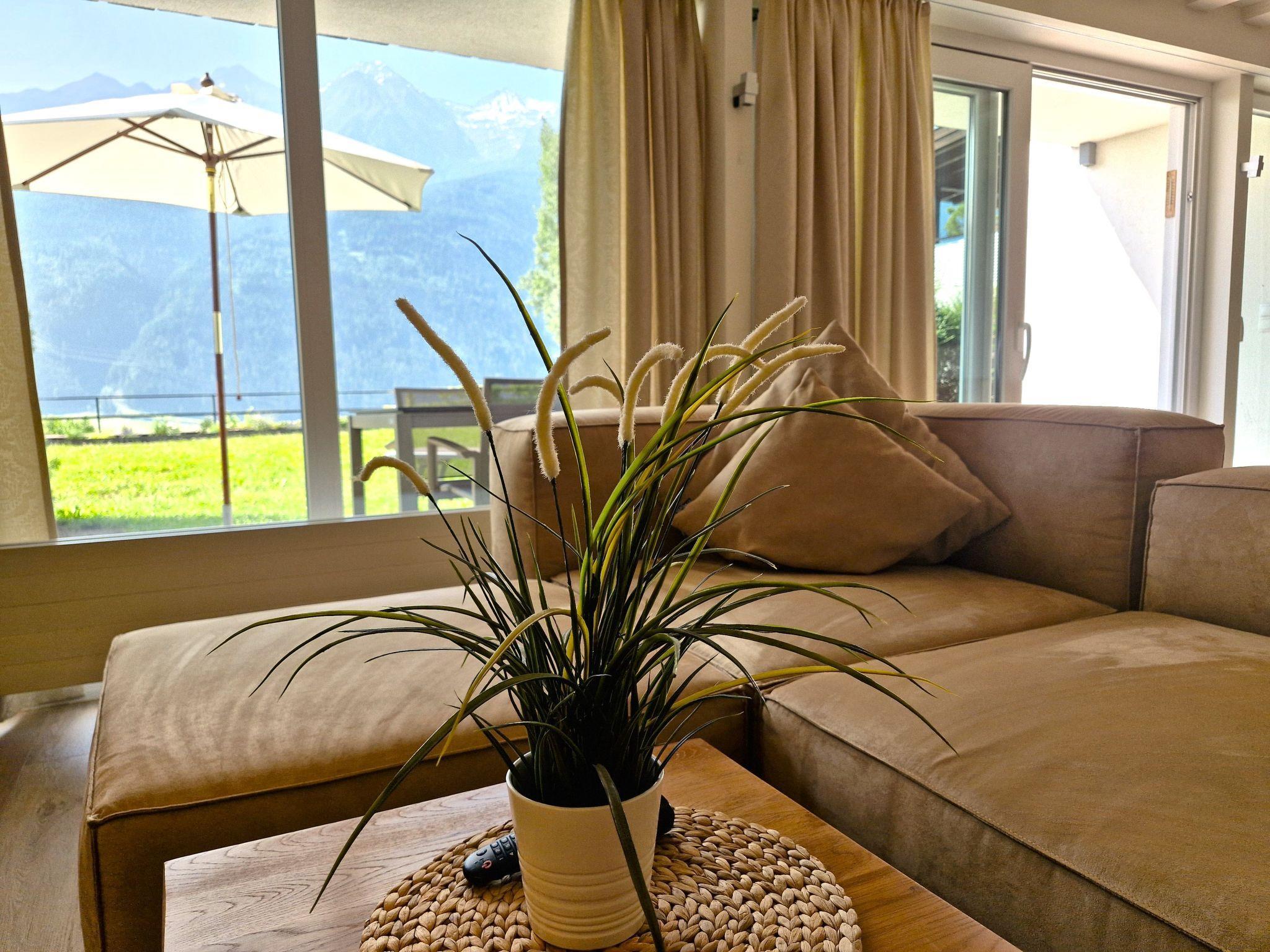 "Chalet St. Wendelin - Typ A", 3-room semi-detached house 90 m2. Living room with panoramic window with 1 double sofabed, dining nook and satellite TV (flat screen). Exit to the terrace. Kitchen (oven, dishwasher, 4 ceramic glass hob hotplates, microwave, electric coffee machine). Sep. WC. Upper floor: 1 double bedroom. 1 room with 2 beds. Shower/bidet/WC, double hand-basin. Large terrace roofed, patio. Terrace furniture, deck chairs. Very beautiful panoramic view of the mountains and the countryside. Facilities: hair dryer. Internet (WiFi, free). Please note: non-smoking house. Maximum 2 pets/ dogs allowed.