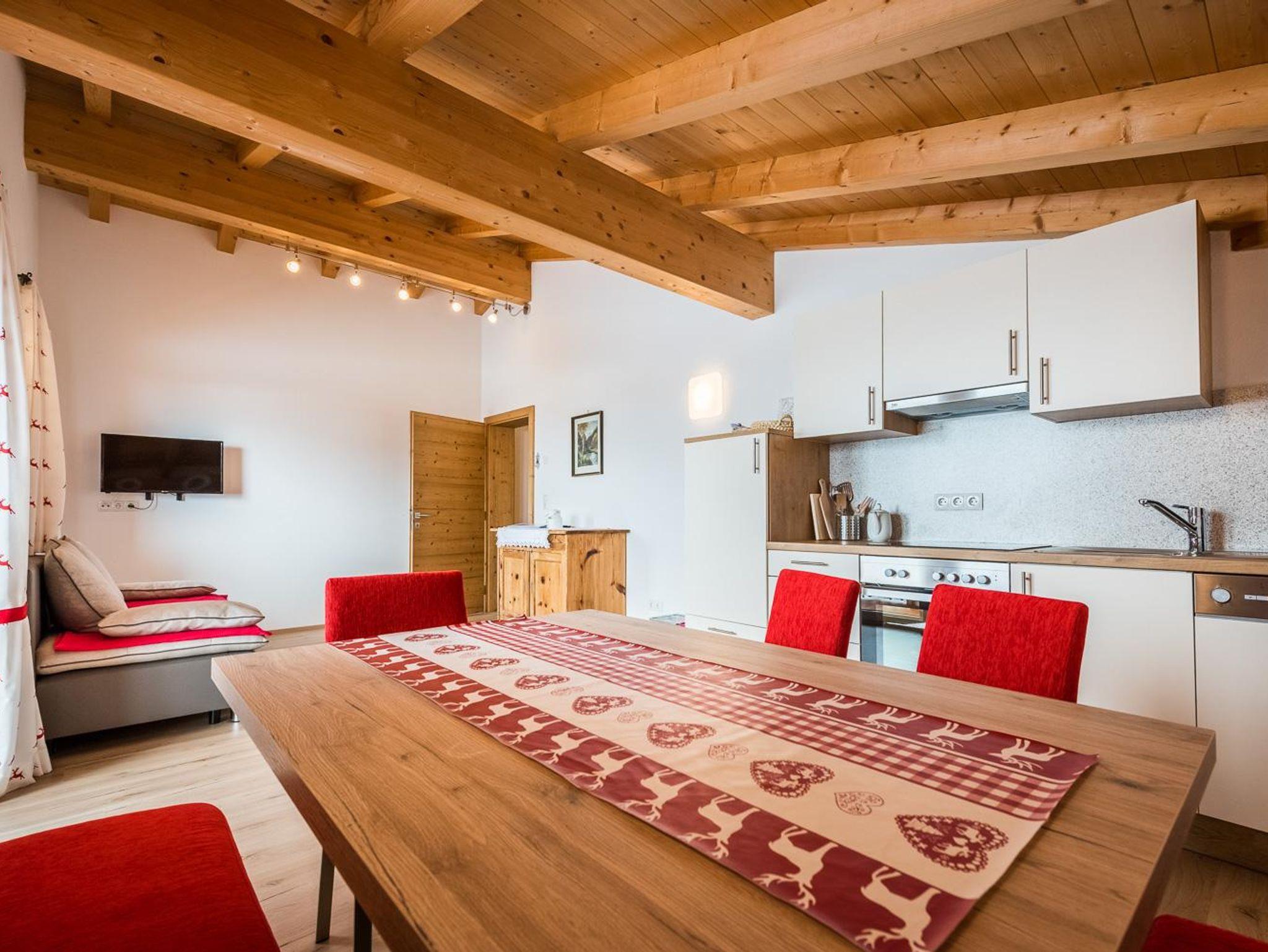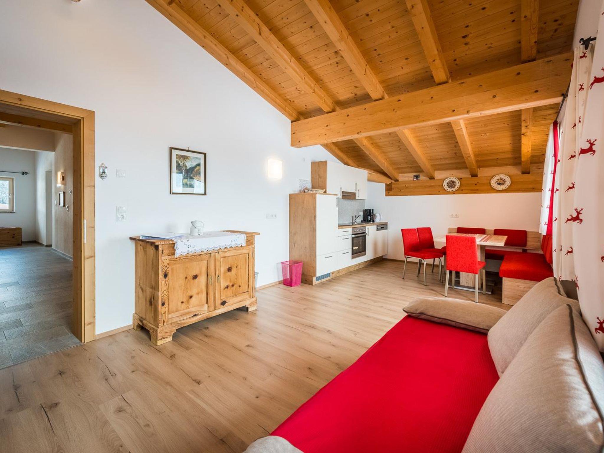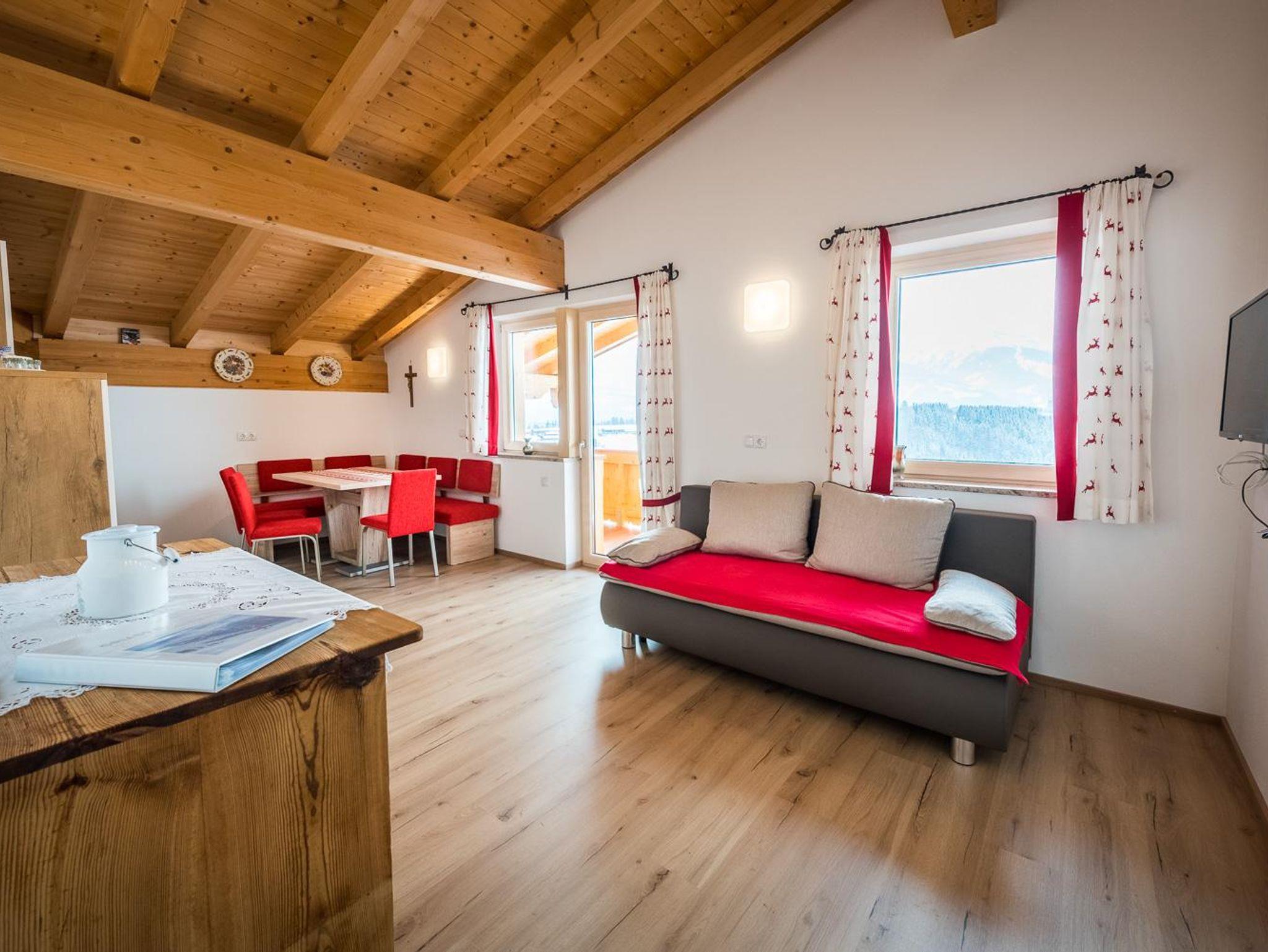 Die Ferienwohnung Alpenpanorama ist eine wunderschöne große Wohnung im 2. Obergeschoß mit schönen Holzbalken an der Decke. Die Wohnung hat auch einen großen Balkon. Sie genießen einen wunderschönen Ausblick über die umliegenden Berge des Alpenhaupkamm und ins Karwendelgebirge. Die Wohnung hat einen großen Vorraum, zwei Doppelbettzimmer, Eine große Wohnküche ein Bad mit Badewanne Dusche, WC und ein separates WC. Die Wohnküche ist mit einem großen Küchenblock mit E-Herd mit Backrohr, Dunstabzug Kühlschrank, Geschirrspühlmaschine, Kaffeemaschine, gemütlicher Sitzbank einer Ausziehliege und Sat-TV ausgestattet.