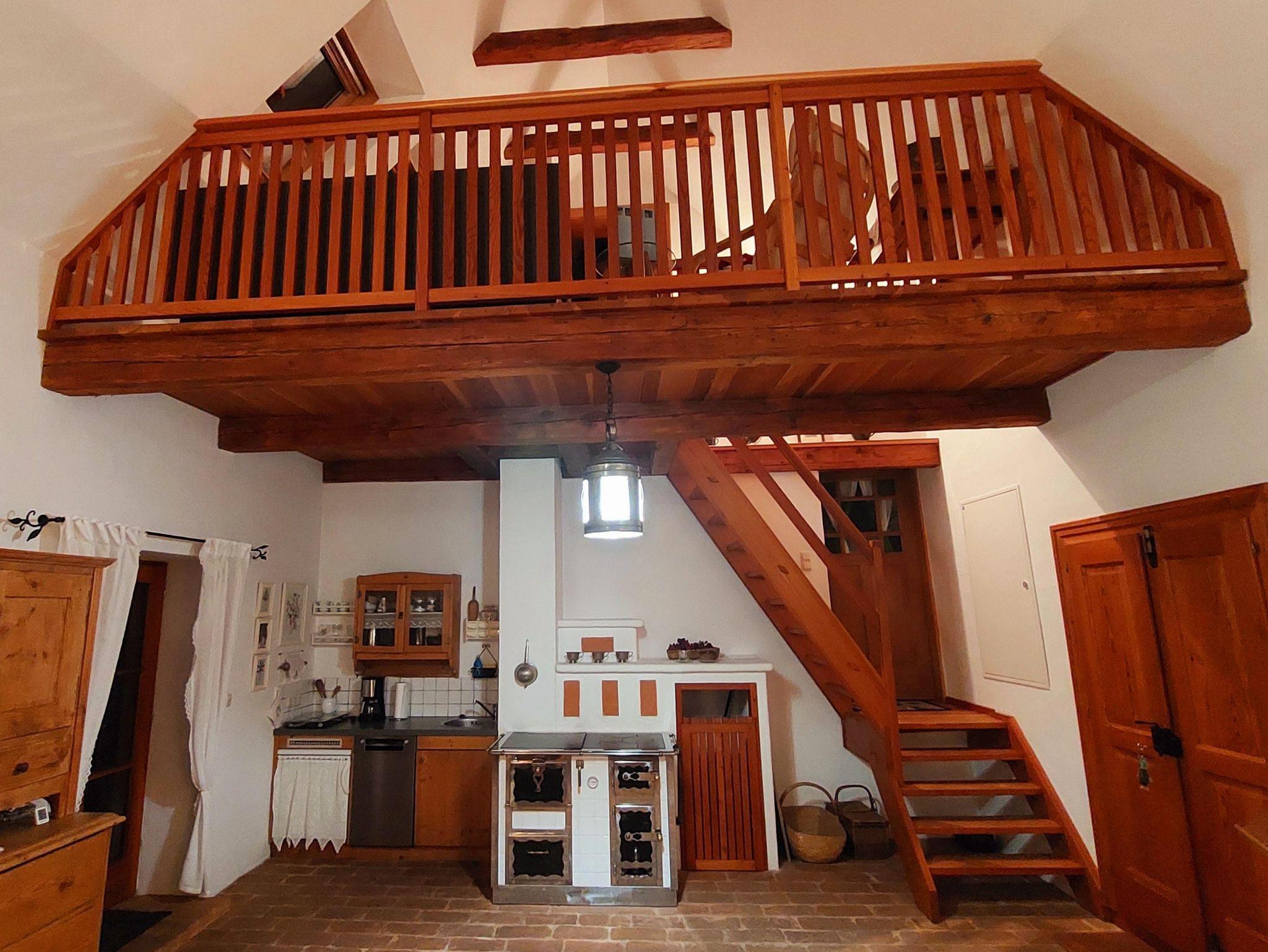 Revitalisiertes Kellerstöckl für einen Urlaub zu Zweit: Rund 98 Quadratmeter Wohnfläche auf vier Etagen. Gemütliche Stube mit Lehmziegelboden, vollausgestattete Küche mit Holzofen, romantisches Himmelbett, heimelige Galerie, großzügiges Badezimmer mit Eckbadewanne und WC, ruhige und schattige Terrassen uvm.