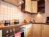 Küche mit Geschirrspüler, Herd (4 Ceranfelder), Backofen, Mikrowelle, Toaster, Wasserkocher, Kaffeemaschine und Essplatz mit Eckbank und 3 Stühlen. Balkonausgang.