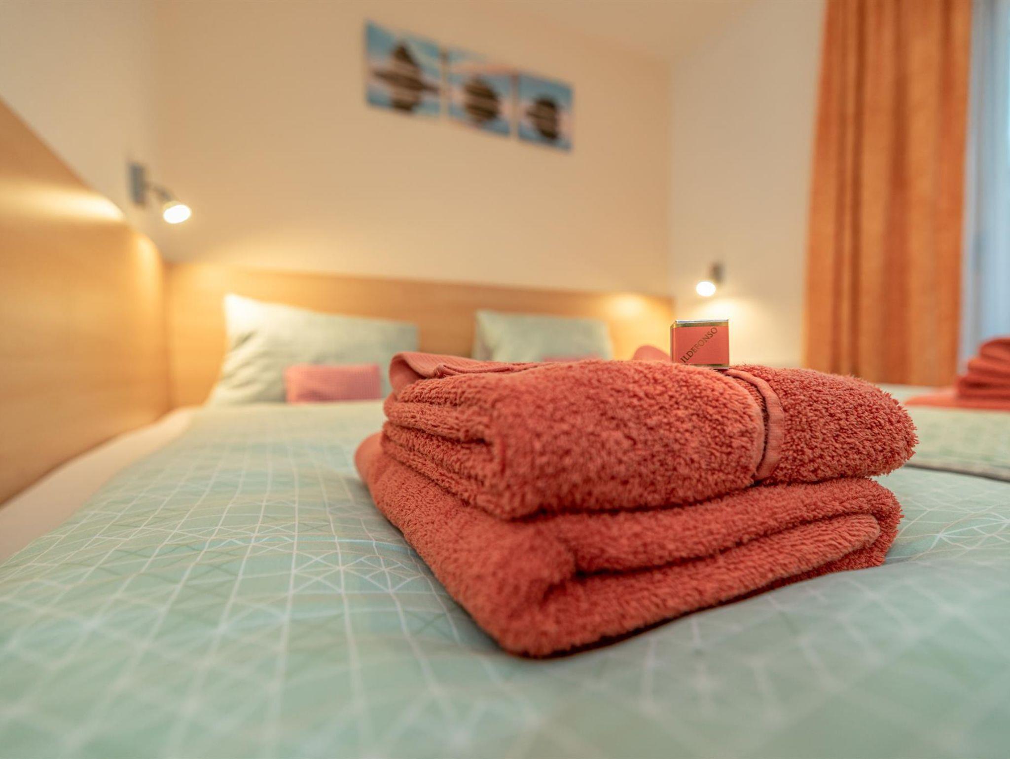 Wohnung mit 40m², 2 getrennte Doppelzimmer, Wohnküche mit Geschirrspüler, Bad/Dusche, WC und Terrasse. Die Wohnung ist mit Sat-TV und Radio ausgestattet.