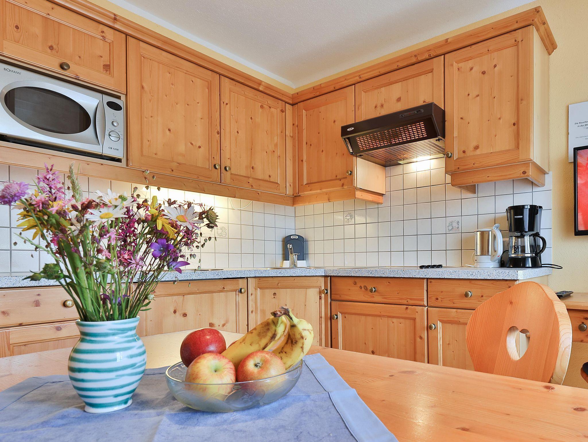 In den Küchen gibt es Mikrowelle, Toaster, Wasserkocher, Filterkaffeemaschine, Geschirrspüler u. Ceranfeldherd mit 2 - 4 Platten.