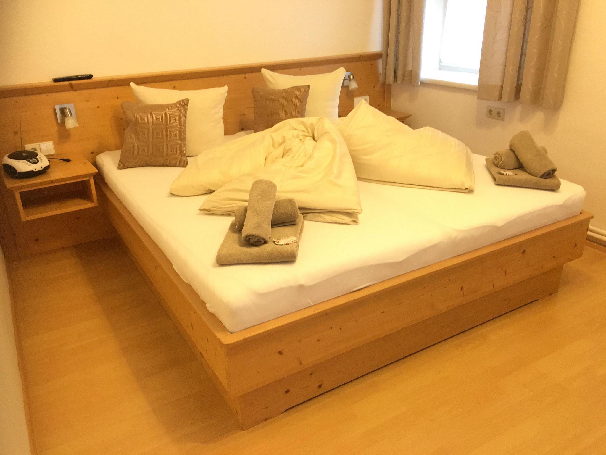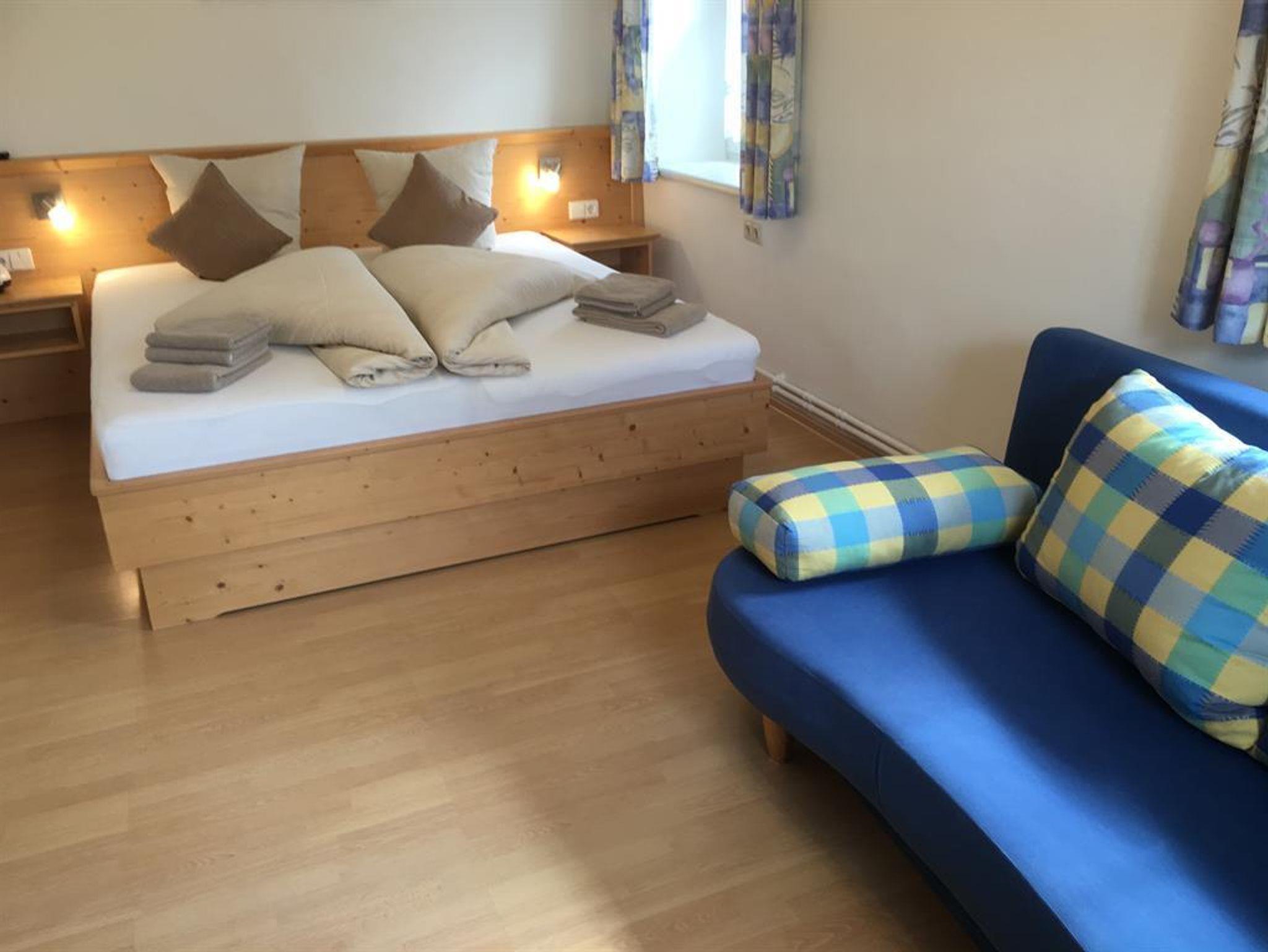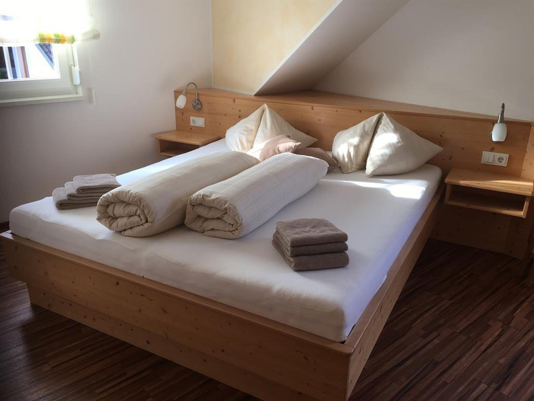 Unsere Ferienwohnung drei im zweiten Stock des Hauses bietet auf rund 60 m² Platz für vier - auf Anfrage bis sechs Personen. Zwei getrennt Schlafzimmer, eine große und gemütliche Wohnküche mit einem ausziehbaren Sofa für zwei Personen. Alles ausgestattet mit Vollholzmöbeln. Das Bad verfügt über eine Dusche und das WC ist extra. Die Küche ist voll ausgestattet.