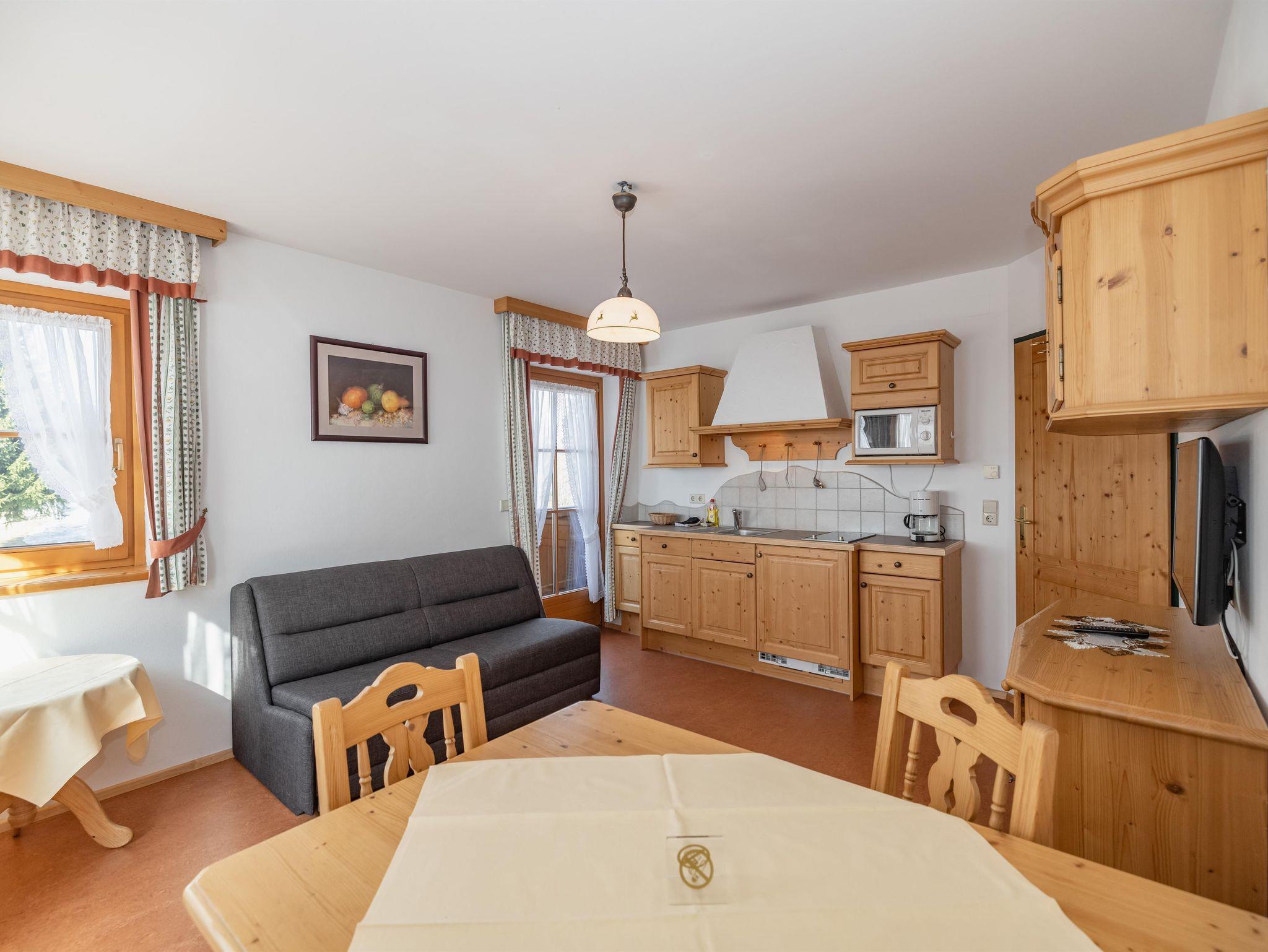 sehr schönes geräumiges Appartement mit Vollholzmöbel für 4-5 Personen, 65 m2, Vorräume, 2 getrennte Schlafzimmer, komplett eingerichtete Küche mit großer Sitzecke, Dusche, 2x WC, 2x Sat-TV und großer Balkon mit Talblick, Nichtraucher