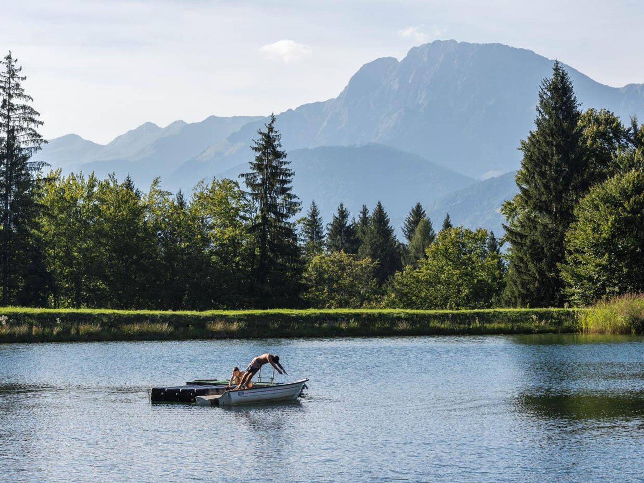 + Tretboot, Baden und Schwimmen in unserem kleinen, am Hof gelegenen Badesee