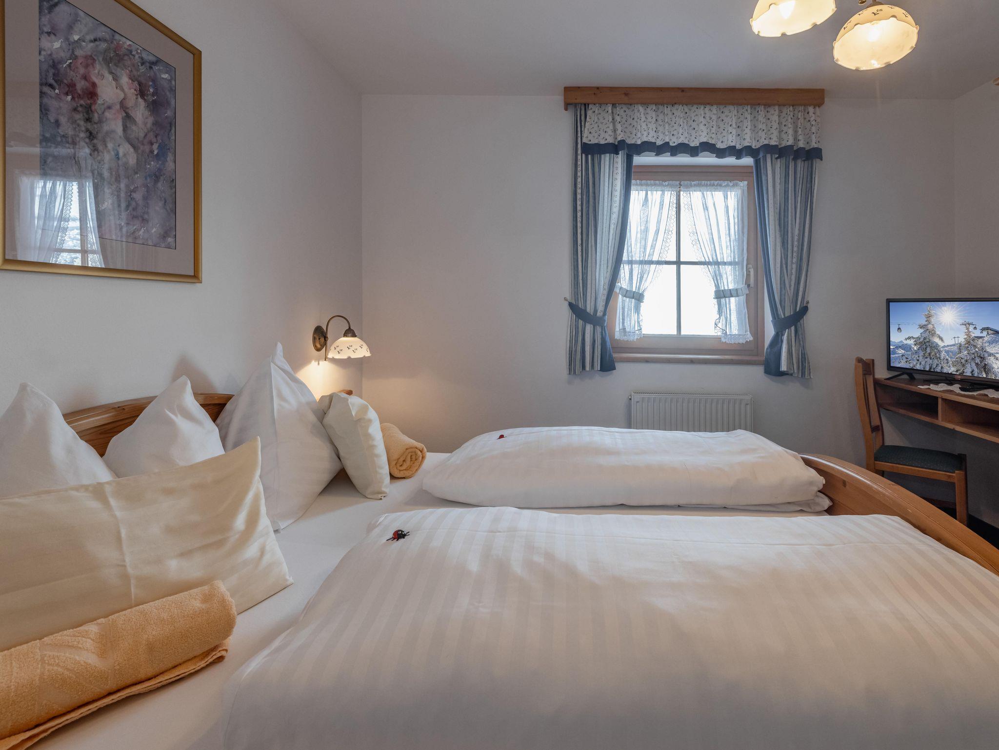 Herzlich Willkommen im - direkt an der Carnia-Piste gelegenen - Aparthotel Ederhof (im Winter mit Halbpension). Unsere komfortablen und geräumigen Appartements und Zimmer sind mit rustikalen Vollholzmöbeln eingerichtet und bieten einen wunderschönen Ausblick ins Tal.