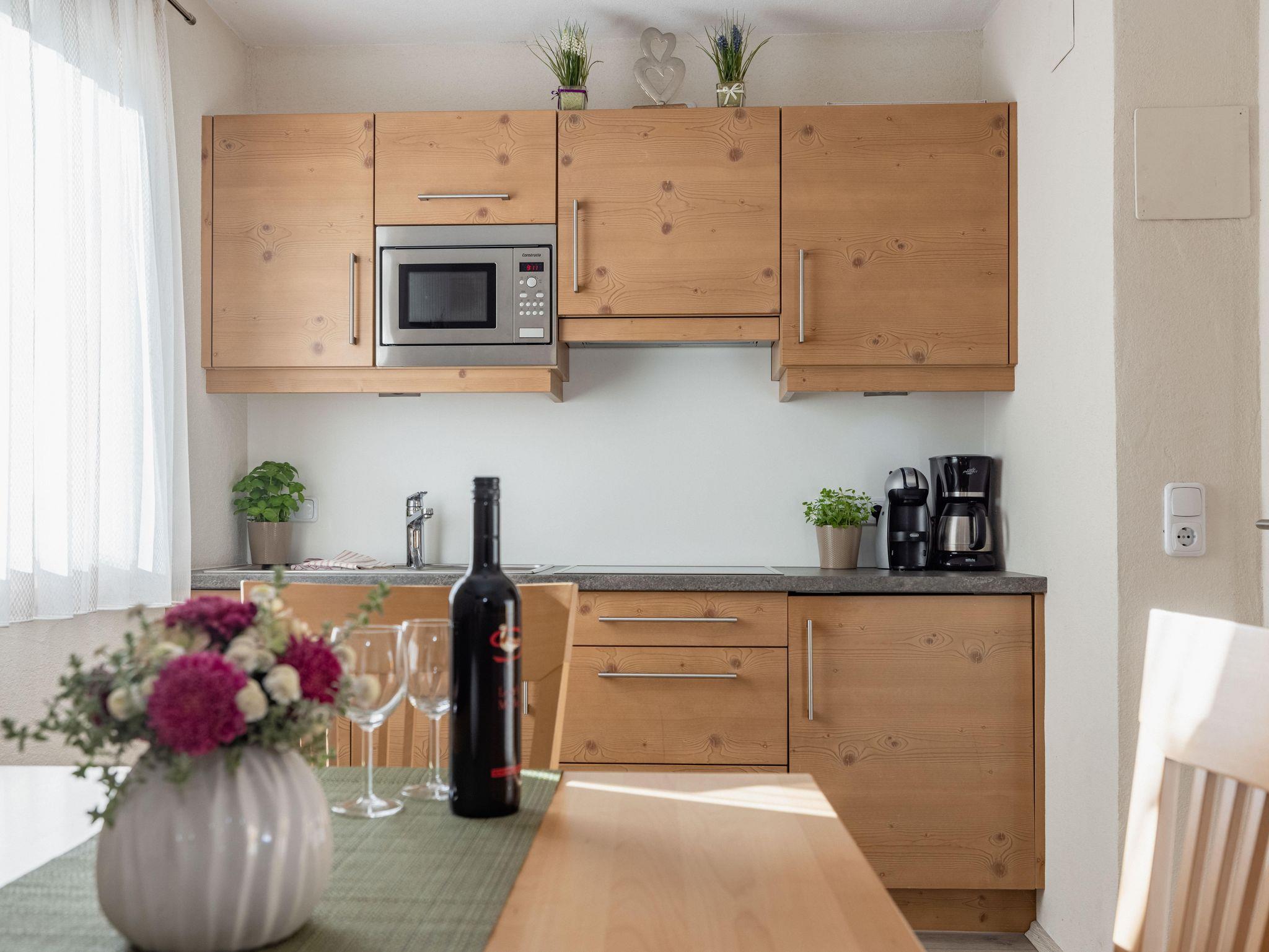 Ferienwohnung mit • ca. 84 m² für max. 7 Personen • 2 Schlafzimmer mit Doppelbetten • 1 Schlafzimmer mit Doppelbett und 1 Zusatzbett • 2 Sitzecken • 1 Badezimmer mit Badewanne • Toilette • Kostenloses Wlan • Bade- und Handtücher • Bettwäsche • Balkon • Fön • TV • Mikrowelle • Kühlschrank • Geschirr • Waschmaschine • Radiowecker • Brotschneidemaschine • Gitterbett auf Anfrage