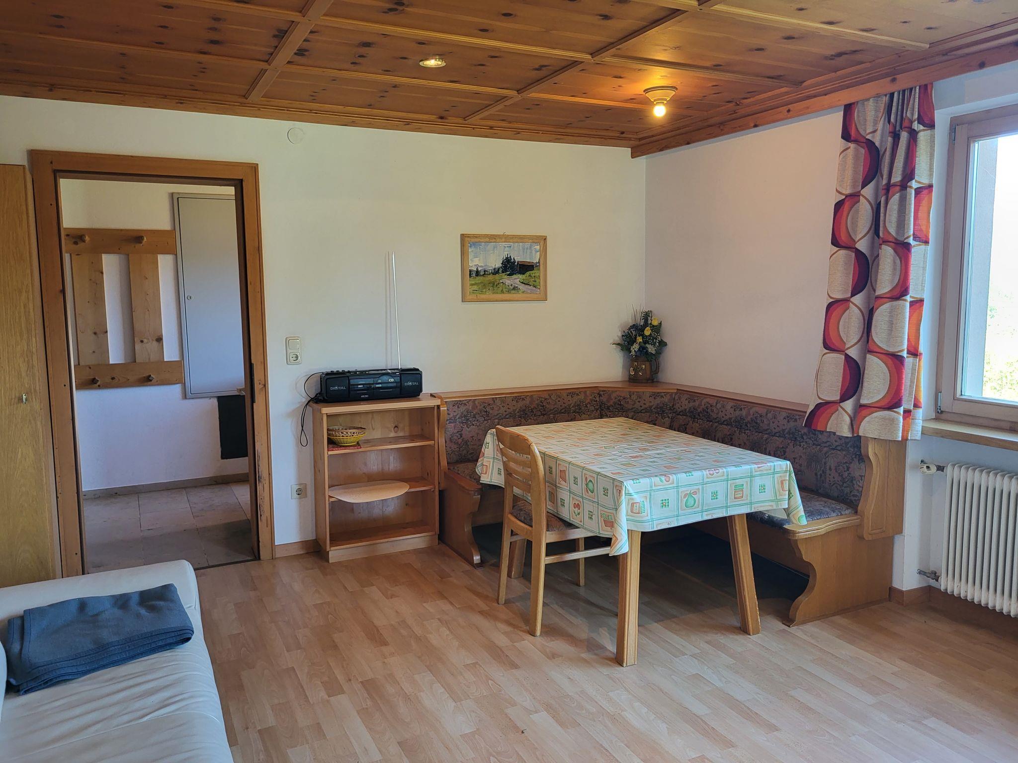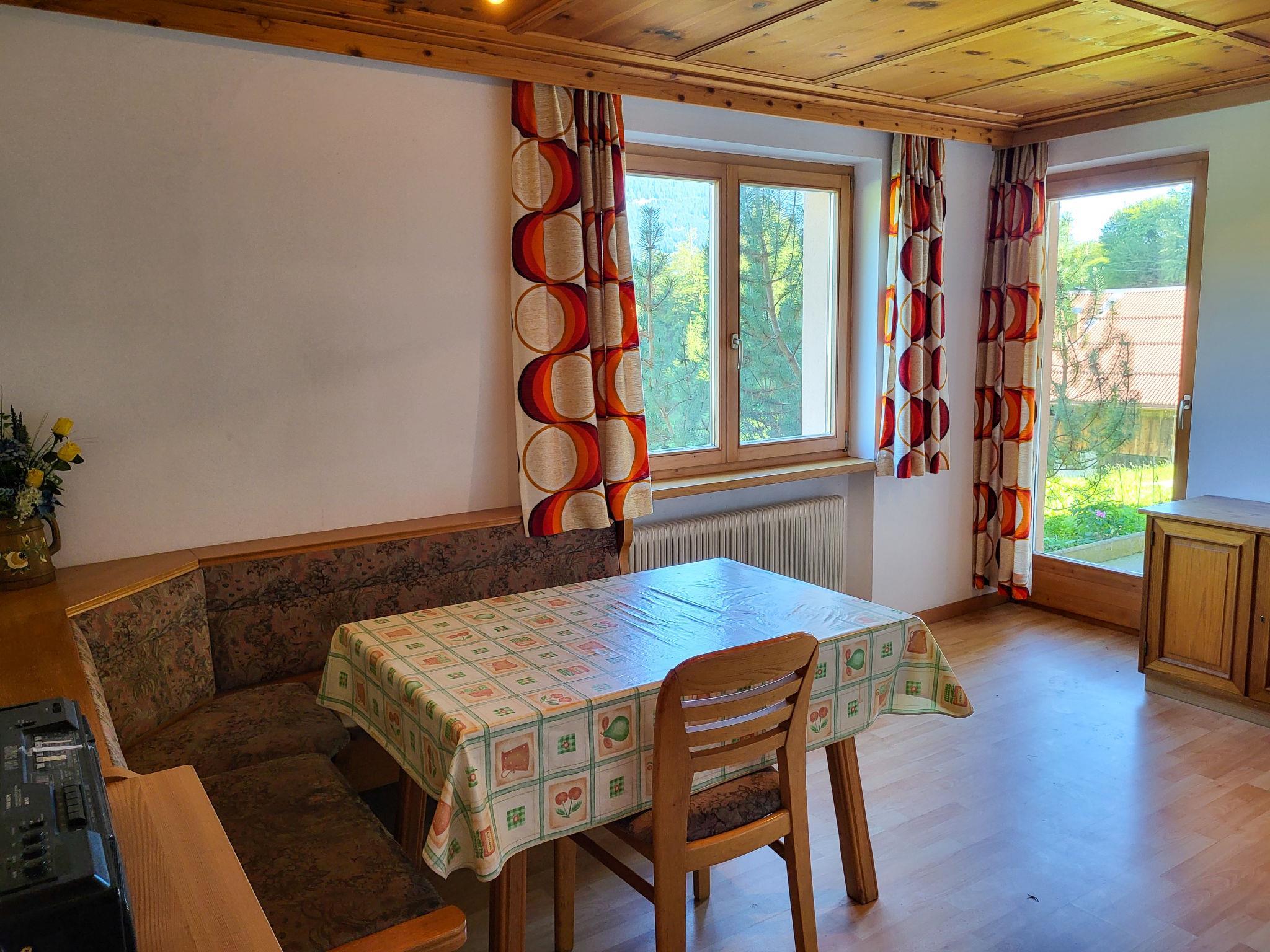 3-room apartment 54 m2, on the ground floor. Object suitable for 2 adults. Simple and wooden furniture furnishings: living/dining room. 1 double bedroom. Kitchen (4 hot plates, oven). Shower/WC. Small terrace. Very beautiful panoramic view of the mountains. Please note: non-smokers only. Smoke alarm.