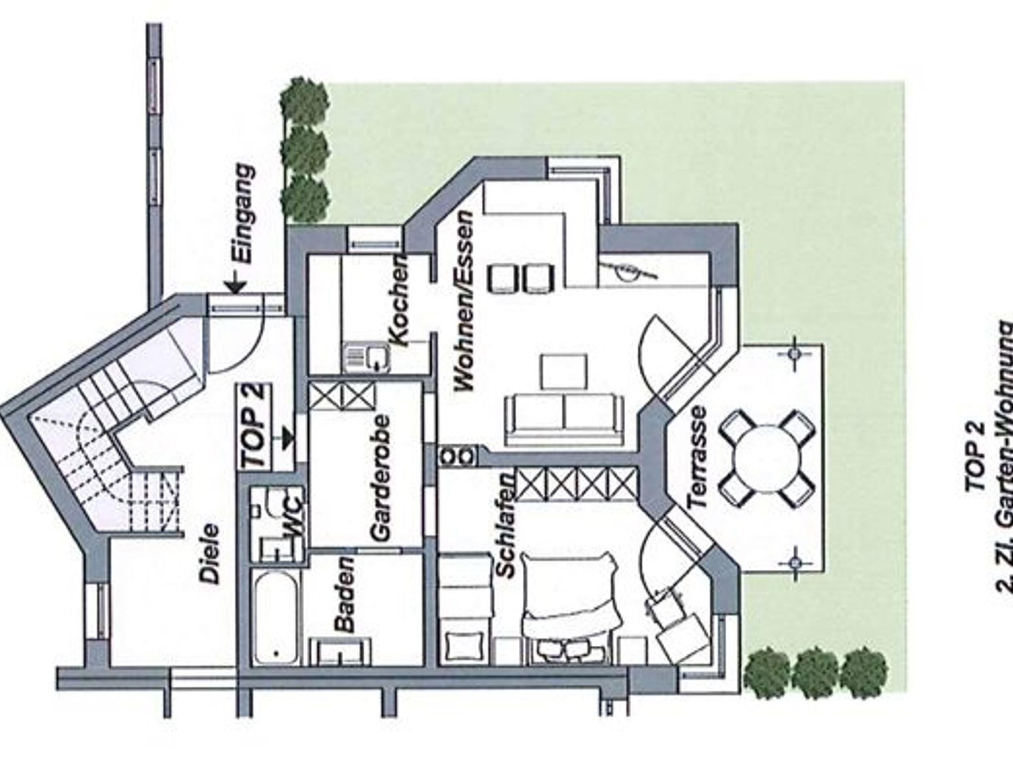 mit separatem Schlafzimmer für 2-3 Personen (mit Tresor), Wohn - Esszimmer mit Tisch und Eckbank, Couch, TV mit Radio, komplett ausgestattete Küche, Vorraum mit Garderobe, Badezimmer, separates WC. Direkt von der Wohnung erreichen Sie Ihre schöne Gartenterrasse und Liegewiese. Gartemöbel stehen zur Verfügung.