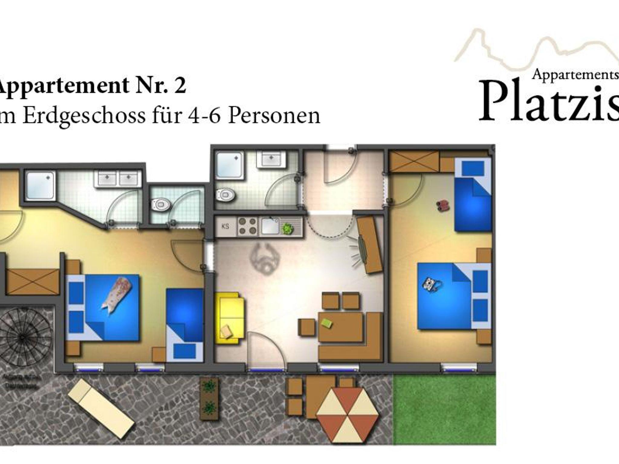 Appartements Platzis, Wohnung 2, 70 m², 1-6 Personen