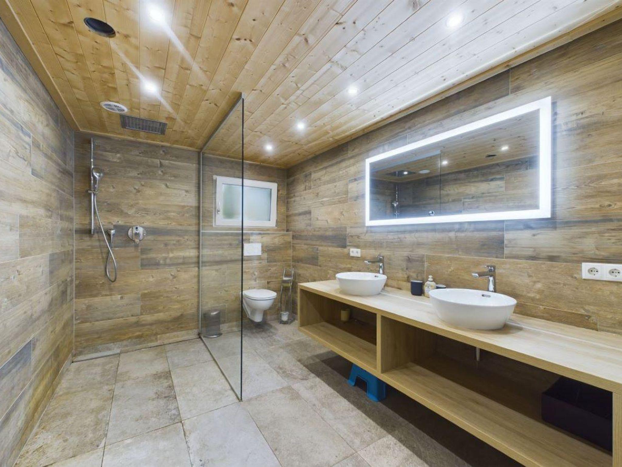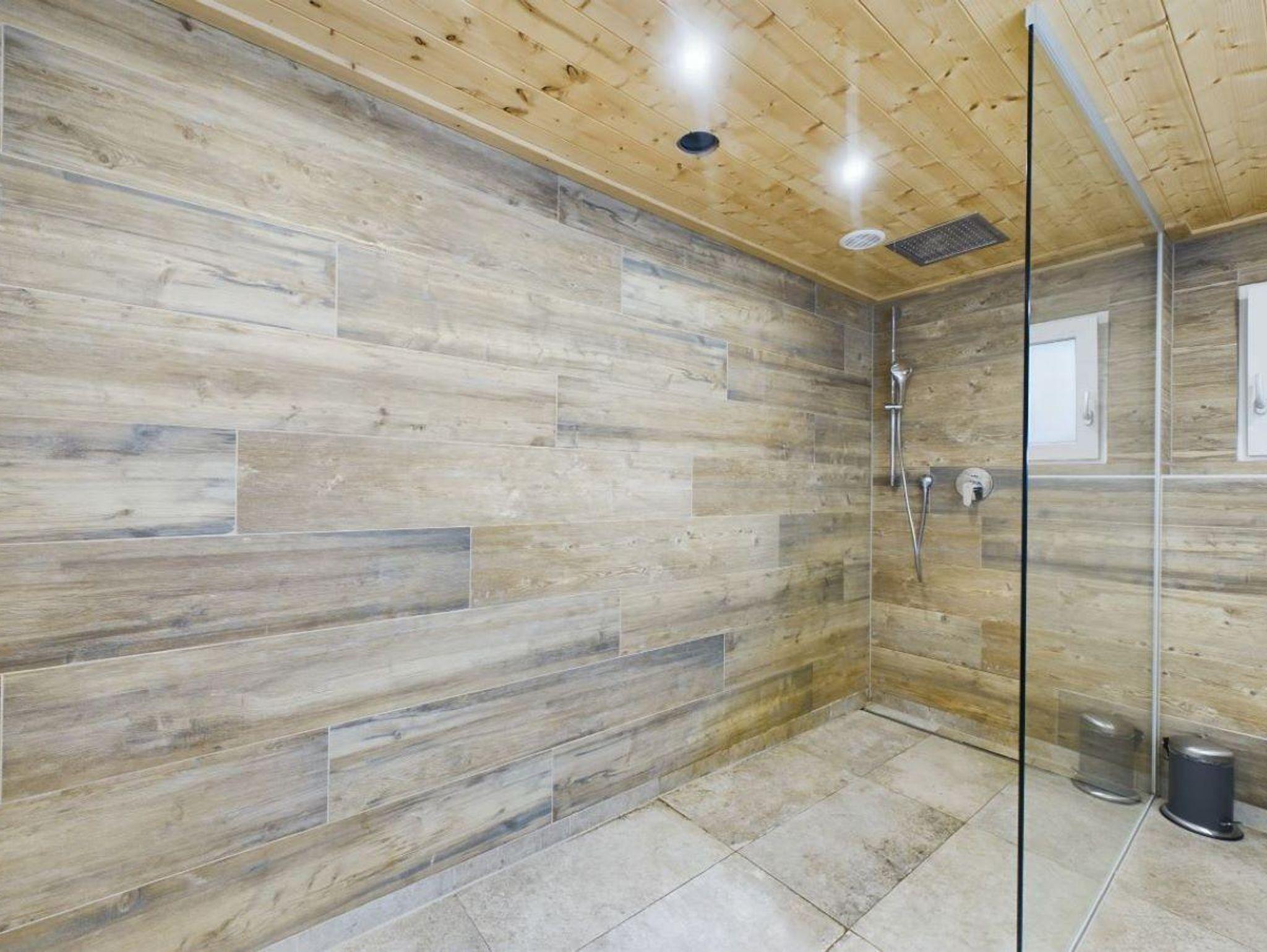 Das große Bad mit begehbarer Dusche lädt zum entspannen ein.
