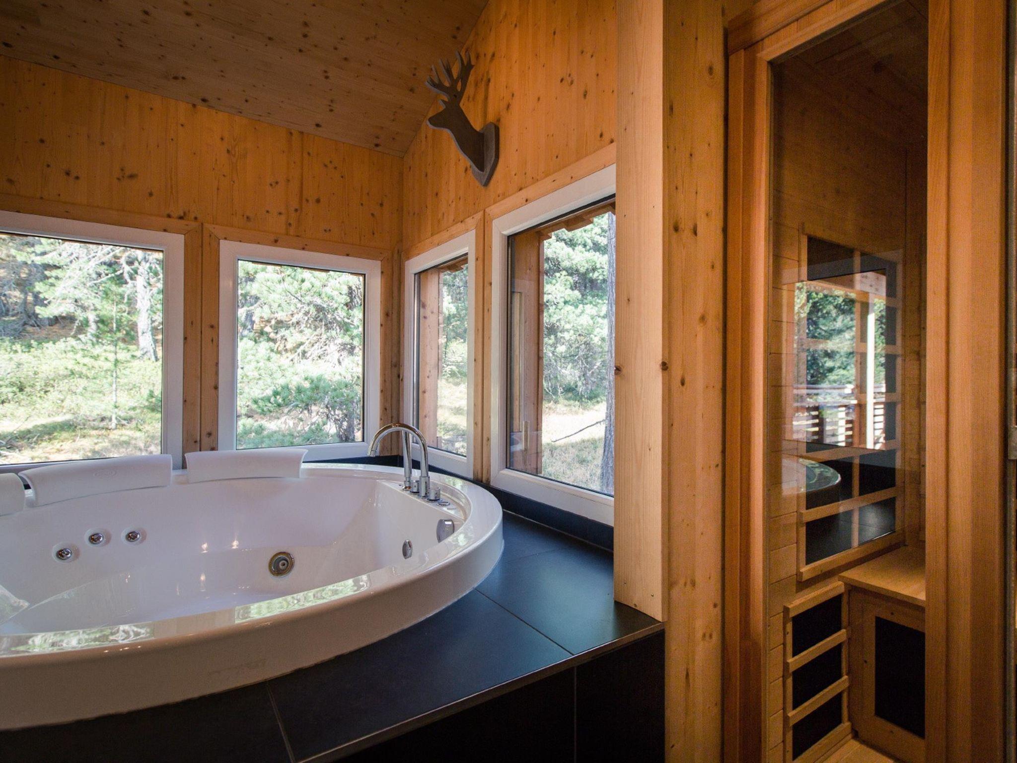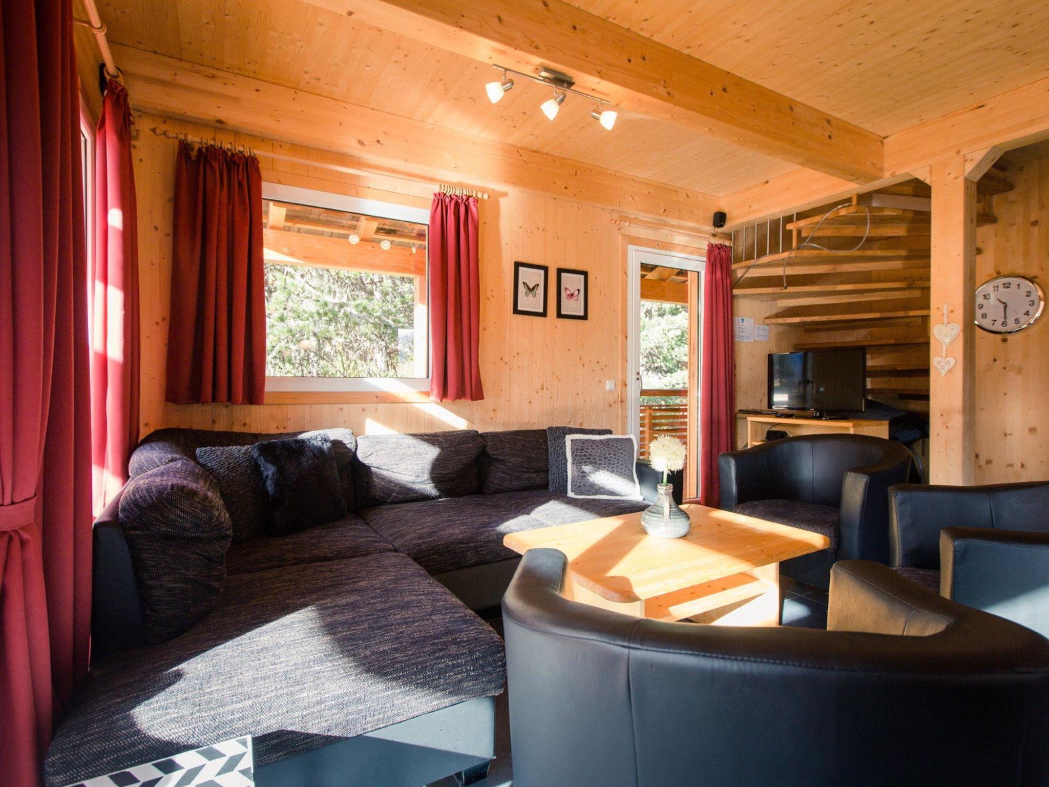 " 39 mit IR-Sauna und Sprudelbad Innen", 5-room chalet 120 m2 on 2 levels. Luxurious and tasteful furnishings: living/dining room with dining nook and satellite TV (flat screen). Open kitchen (oven, dishwasher, 4 ceramic glass hob hotplates, toaster, kettle, microwave, electric coffee machine). Shower/WC. Upper floor: 1 double bedroom. 1 room with 1 bed and 1 double bed. 1 room with 2 beds. 1 room with 2 x 2 bunk beds. Bath/WC, shower/WC, hydro massage bath, Sauna. Balcony. Balcony furniture. Beautiful view of the mountains. Facilities: Internet (WiFi, free). Please note: non-smokers only. The sauna is an infrared cabin.