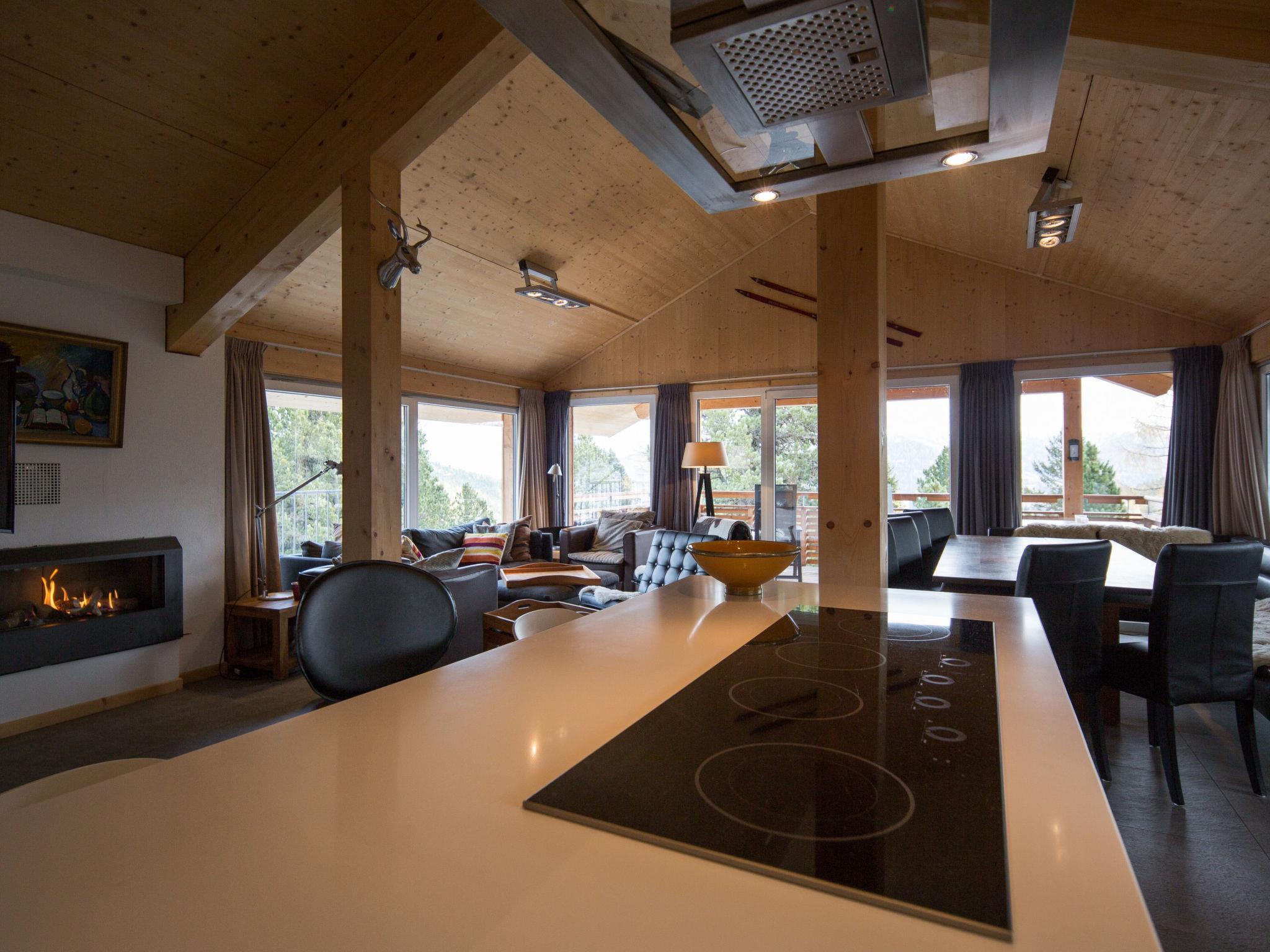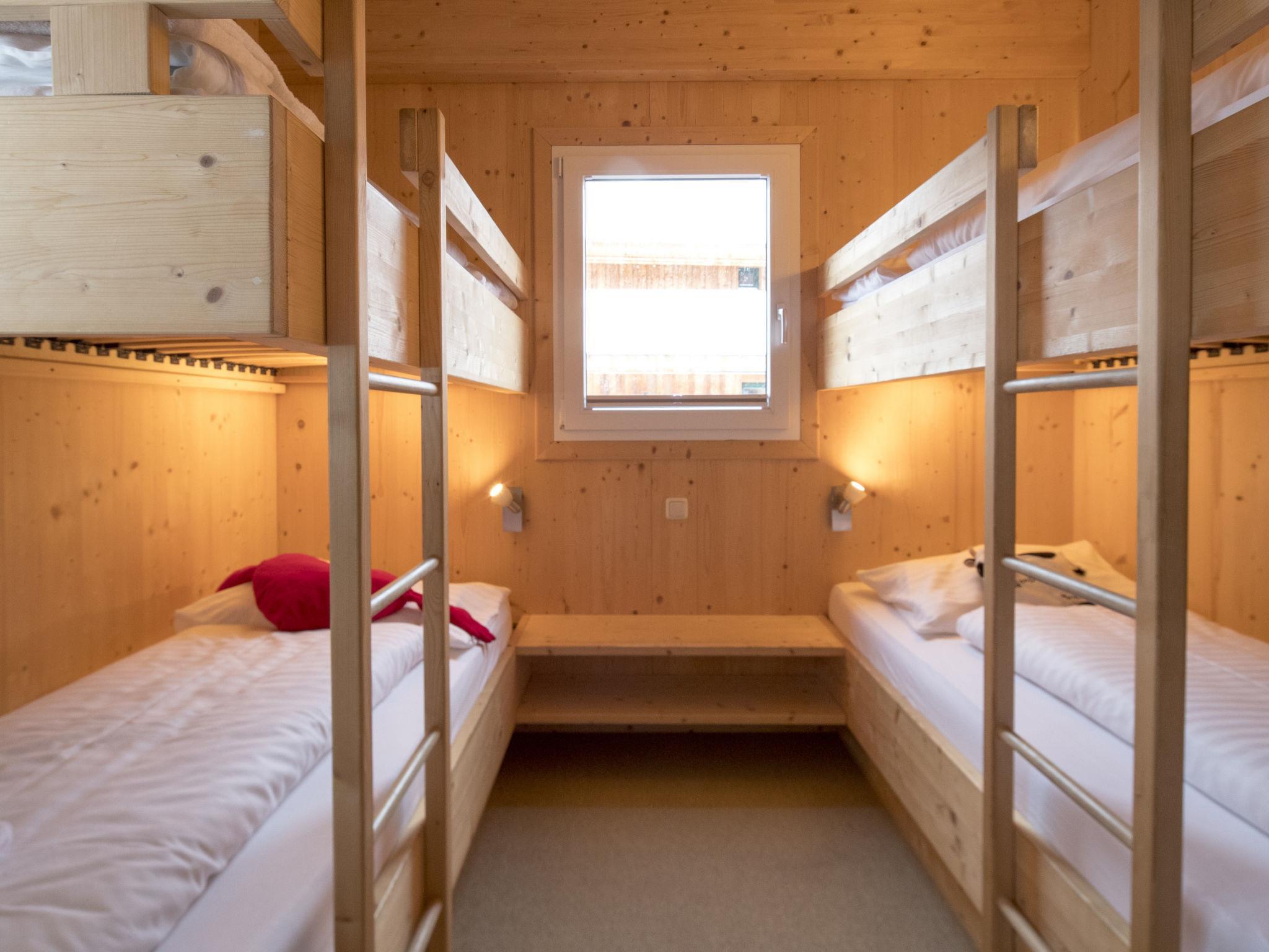 " 18 mit Sauna und Sprudelbad innen", 6-room chalet 130 m2. Luxurious and tasteful furnishings: living/dining room with dining nook and satellite TV (flat screen). Open kitchen (oven, dishwasher, 4 ceramic glass hob hotplates, toaster, kettle, microwave, electric coffee machine). 2 showers/WC. Upper floor: 4 double bedrooms. 1 room with 2 x 2 bunk beds. 2 baths/WC, shower/WC, hydro massage bath, Sauna. Balcony. Balcony furniture. Beautiful view of the mountains. Facilities: Internet (WiFi, free). Please note: non-smokers only.