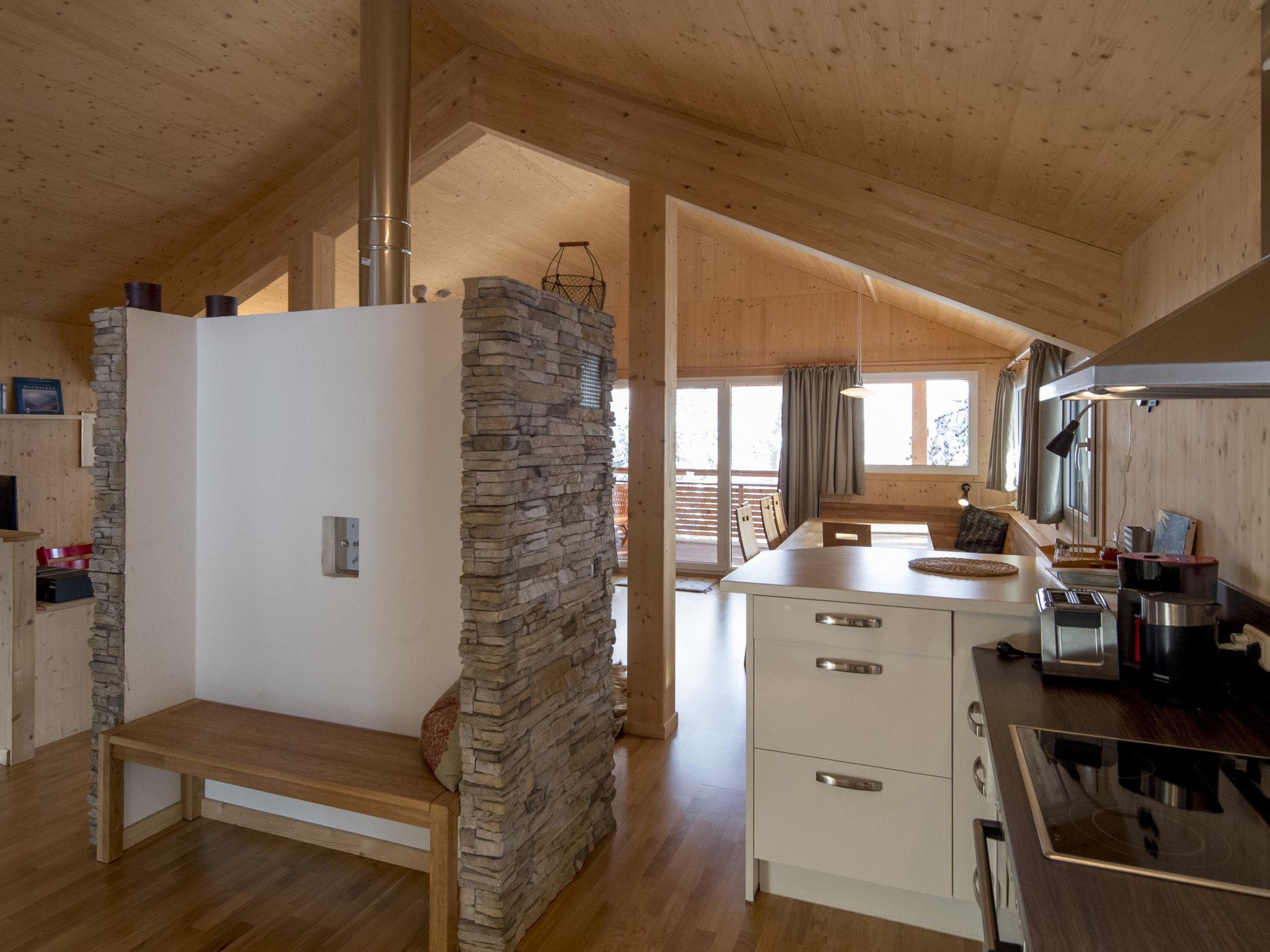 " 28 mit Sauna und Sprudelbad innen", 6-room chalet 130 m2 on 2 levels. Luxurious and tasteful furnishings: living/dining room with dining nook and satellite TV (flat screen). Open kitchen (oven, dishwasher, 4 ceramic glass hob hotplates, toaster, kettle, microwave, electric coffee machine). Shower/WC. Upper floor: 4 double bedrooms. 1 room with 1 x 2 bunk beds, 1 double bed. Bath/WC, shower/WC, hydro massage bath. Balcony. Balcony furniture. Beautiful view of the mountains. Facilities: Internet (WiFi, free). Please note: non-smokers only.