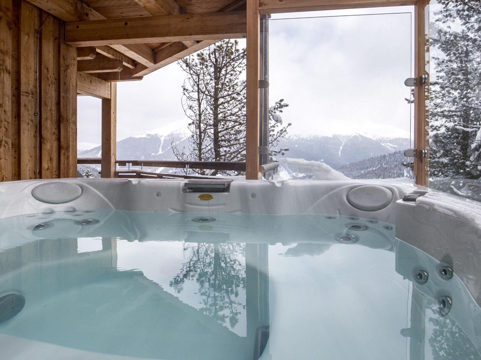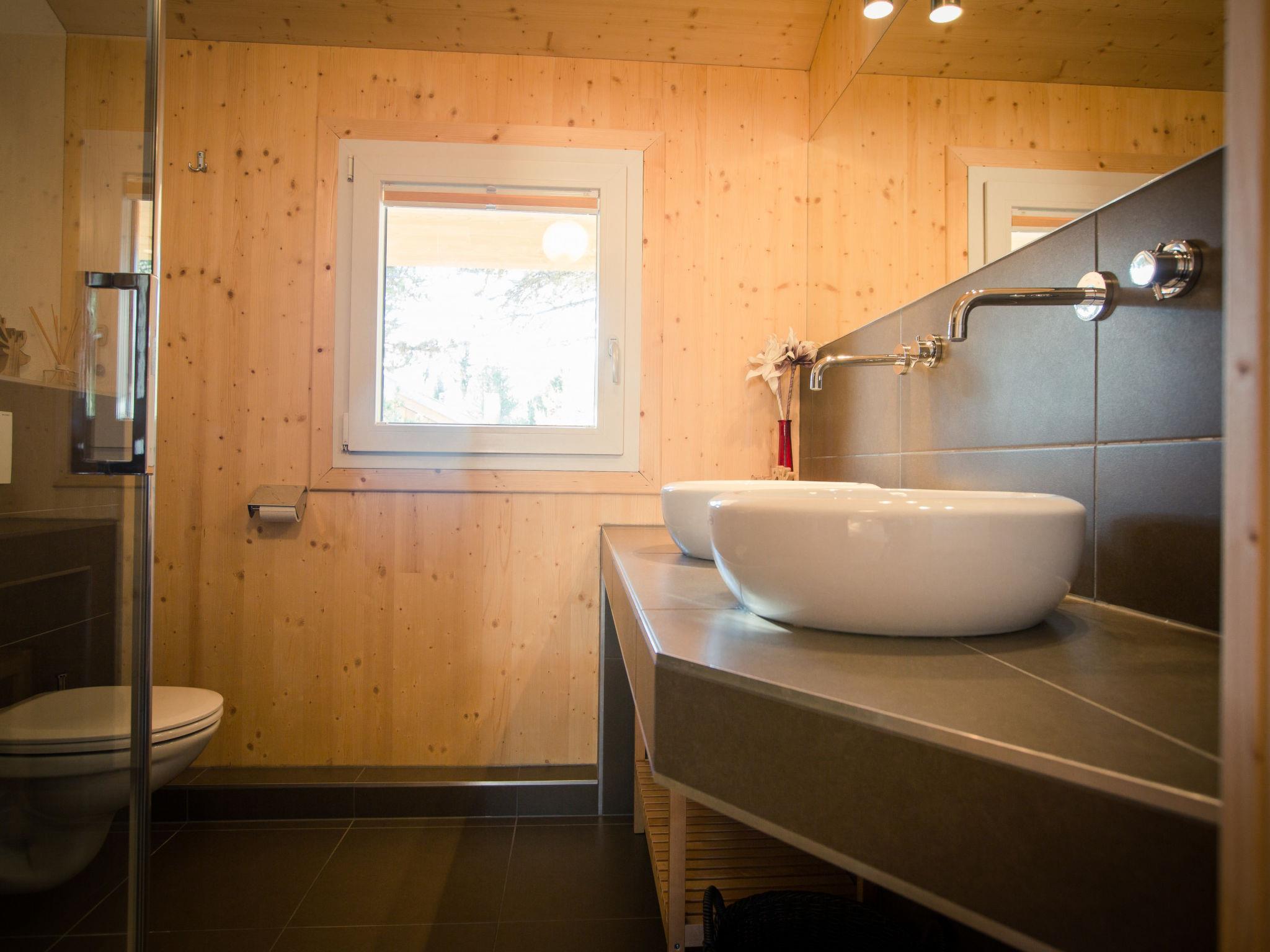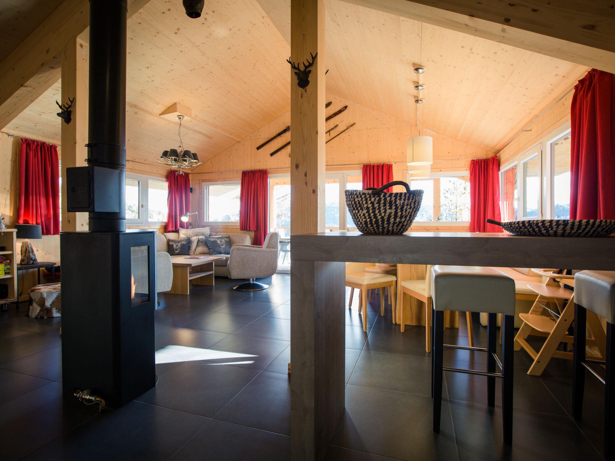 " 48 mit IR-Sauna und Sprudelbad aussen", 6-room chalet 120 m2 on 2 levels. Luxurious and tasteful furnishings: living/dining room with dining nook and satellite TV (flat screen). Open kitchen (oven, dishwasher, 4 ceramic glass hob hotplates, toaster, kettle, microwave, electric coffee machine). 2 showers/WC. Upper floor: 4 double bedrooms. 1 room with 2 x 2 bunk beds. Bath/WC, shower/WC, Sauna. Balcony. Balcony furniture. Beautiful view of the mountains. Facilities: Internet (WiFi, free). Please note: non-smokers only. The sauna is an infrared cabin.