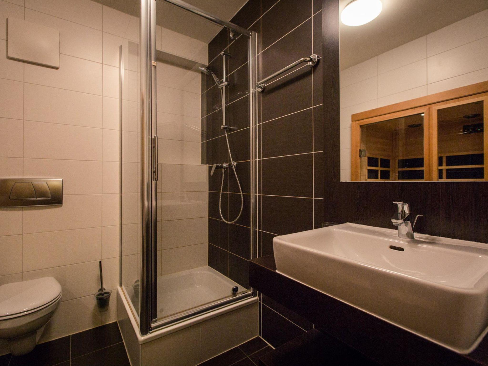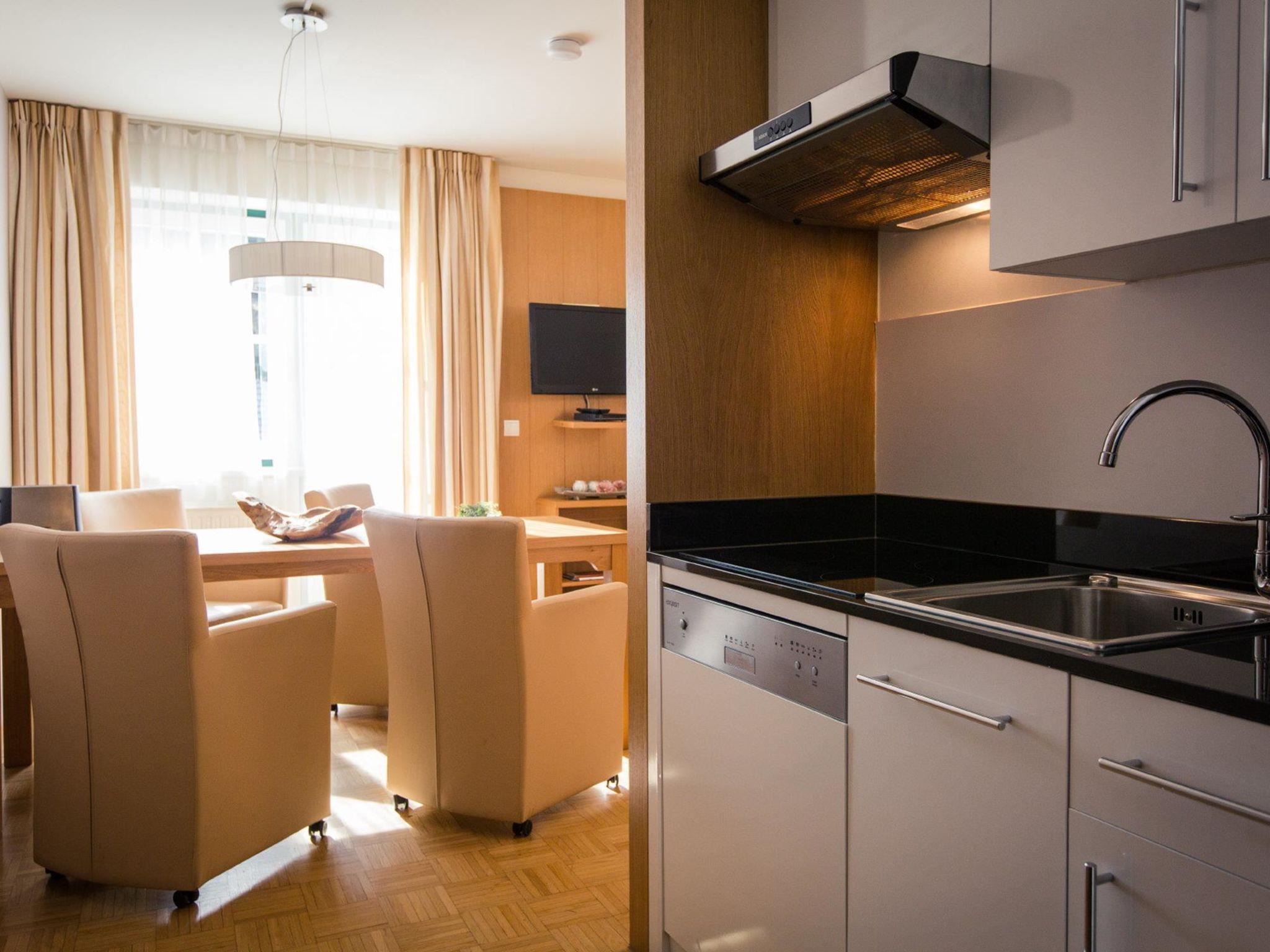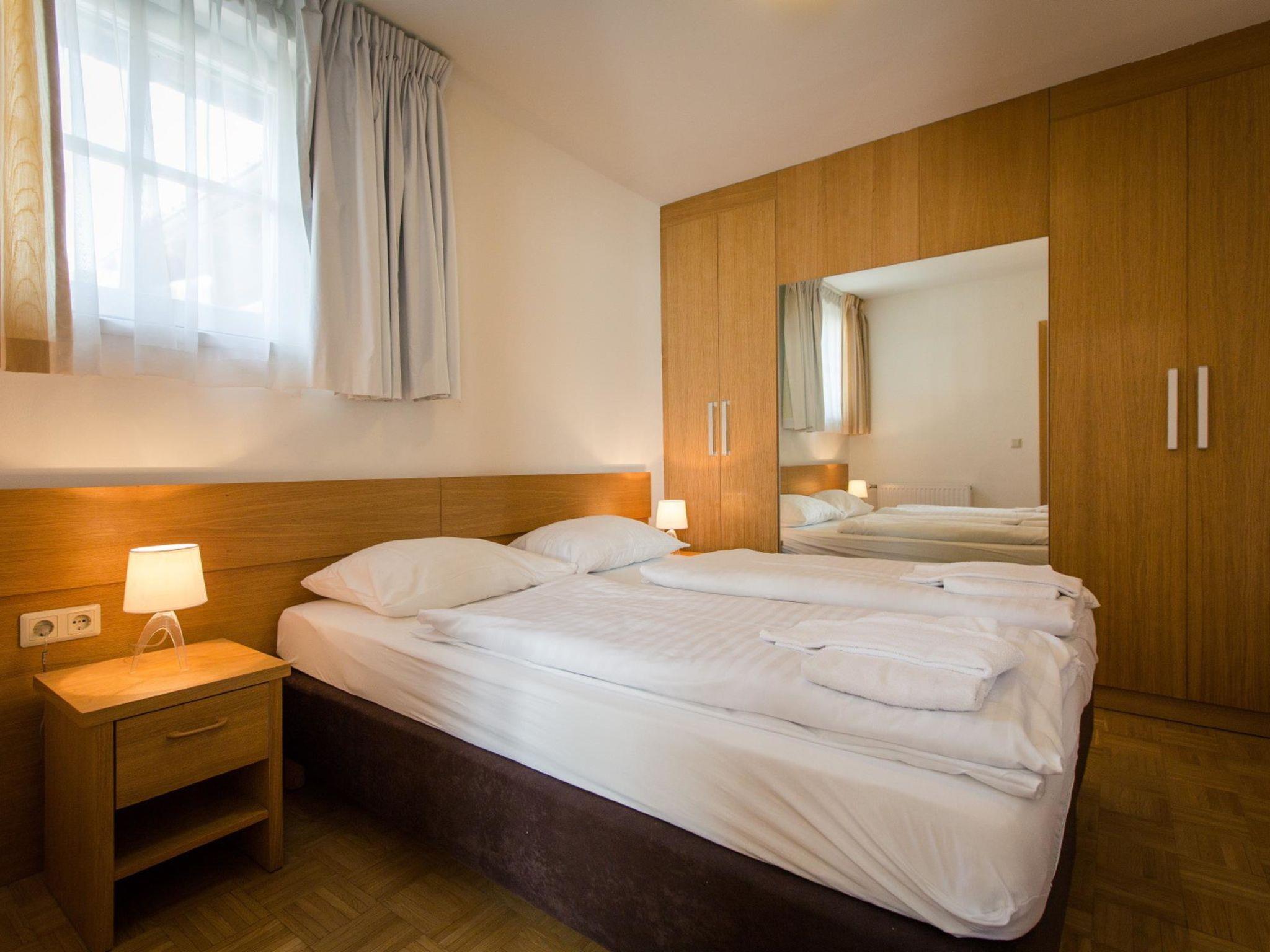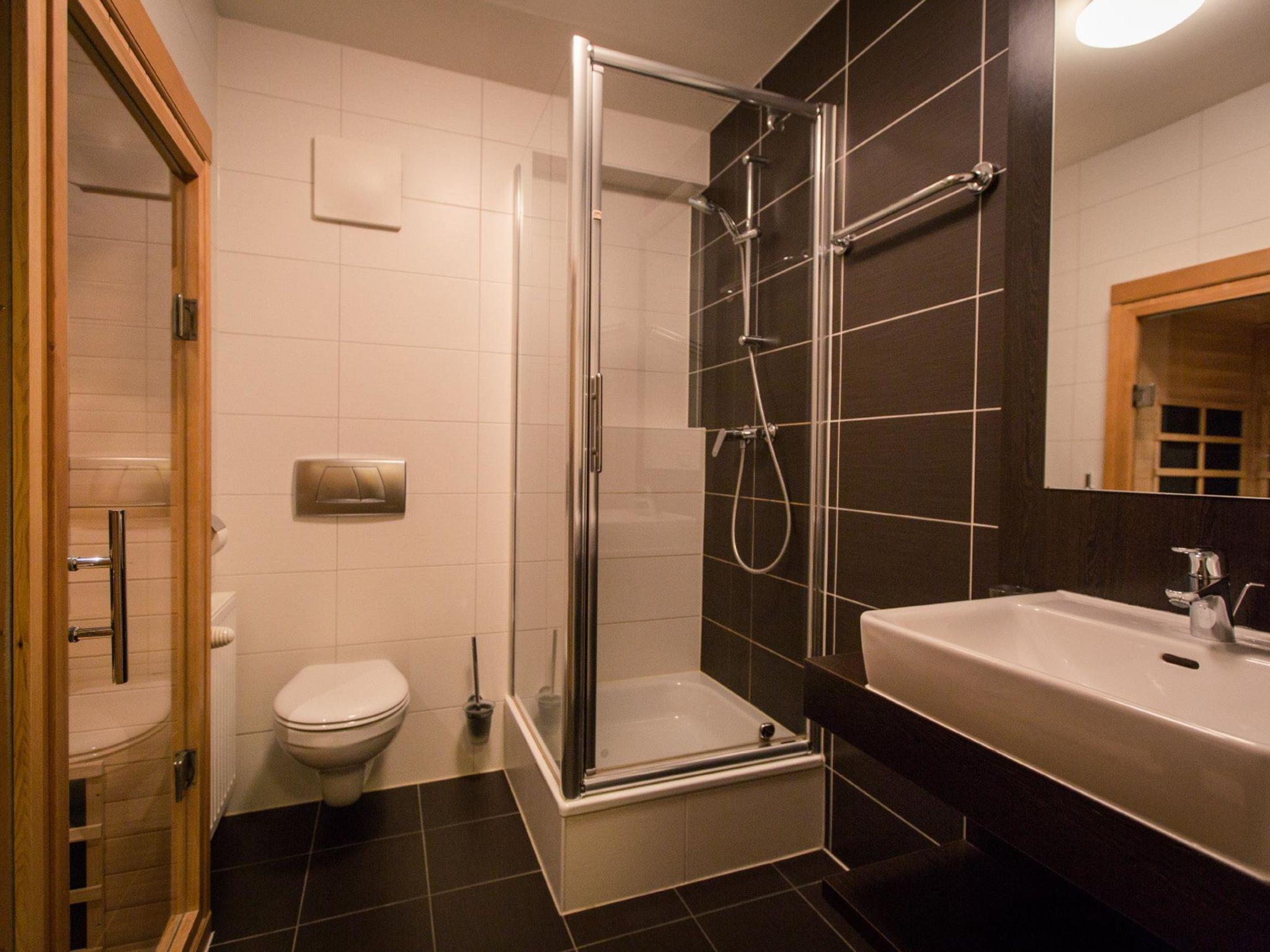 " 11 mit Balkon", 3-room apartment 50 m2. Modern and cosy furnishings: entrance hall with 1 x 2 bunk beds. Living/dining room with dining nook and satellite TV (flat screen). 1 double bedroom. Open kitchen (dishwasher, 4 ceramic glass hob hotplates, toaster, kettle, microwave, electric coffee machine). Shower/WC, Sauna. Balcony. Balcony furniture. Beautiful view of the mountains and the countryside. Facilities: Internet (WiFi, free). Please note: non-smokers only. The sauna is an infrared cabin.