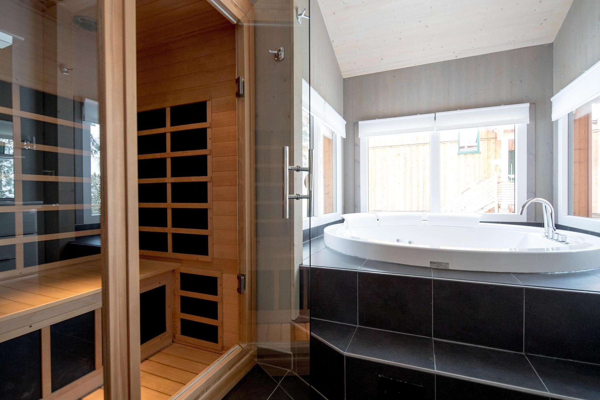 Stueetage: (Indgang , Stue(Fjernsyn, spisebord, pejs, sofahjørne, DVD-afspiller), åbent køkken(kogeplade(Komfur med fire kogeplader, glaskeramisk), elkedel, brødrister, kaffemaskine(espresso, kaffetragt), ovn, mikrobølgeovn, opvaskemaskine , køle-fryseskab), badeværelse(hottub, bruser, infrarød sauna, toilet), Internetadgang, balkon) På 1. etage: (soveværelse(dobbeltseng), soveværelse(køjeseng, køjeseng), soveværelse(dobbeltseng, køjeseng, balkon), Soveværelse med badeværelse(dobbeltseng, bruser, toilet, balkon), badeværelse(bruser, toilet, føntørrer)) skistøvlevarmere, varme(central), havemøbler