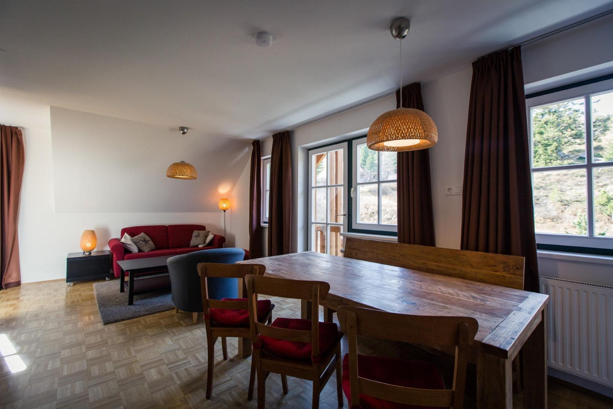 Velkommen til denne rummelige lejlighed på 60 m², der tilbyder et komfortabelt og malerisk tilflugtssted for op til 6 personer. Beliggende midt i en rolig fyrreskov i 1.800 meters højde, tilbyder denne lejlighed en betagende udsigt over bjergene og en perfekt blanding af plads og moderne bekvemmeligheder. Lejligheden har tre veludstyrede soveværelser: et med dobbeltseng, et med to enkeltsenge og et med køjesenge, hvilket gør den ideel til familier eller grupper. Der er to badeværelser, hver udstyret med bruser eller badekar, hvilket sikrer komfort for alle gæster. På den private balkon kan du nyde den friske bjergluft og den betagende udsigt. Lejlighedens førsteklasses beliggenhed giver nem adgang til udendørs aktiviteter såsom cykling, vandreture og skiløb. Den maleriske sø ligger kun 1 km væk, ideel til en afslappet gåtur eller en afslappende dag ved vandet. Det åbne køkken er fuldt udstyret til at tilfredsstille alle dine kulinariske behov, herunder keramisk kogeplade, mikroovn, opvaskemaskine og køleskab, fryser. De vigtigste små apparater såsom en brødrister, elkedel og kaffemaskine er også tilgængelige. Et lille startsæt med opvasketabletter, opvaskemiddel (prøve), svamp, affaldssække, rengøringsmidler og et viskestykke står klar til dig ved ankomst. Hold forbindelsen med gratis Wi-Fi og nyd en række forskellige kanaler på satellit-tv. Forbedre dit ophold med vores Butler Card eller Butler Program, som giver dig personlig service og enestående support under dit ophold.