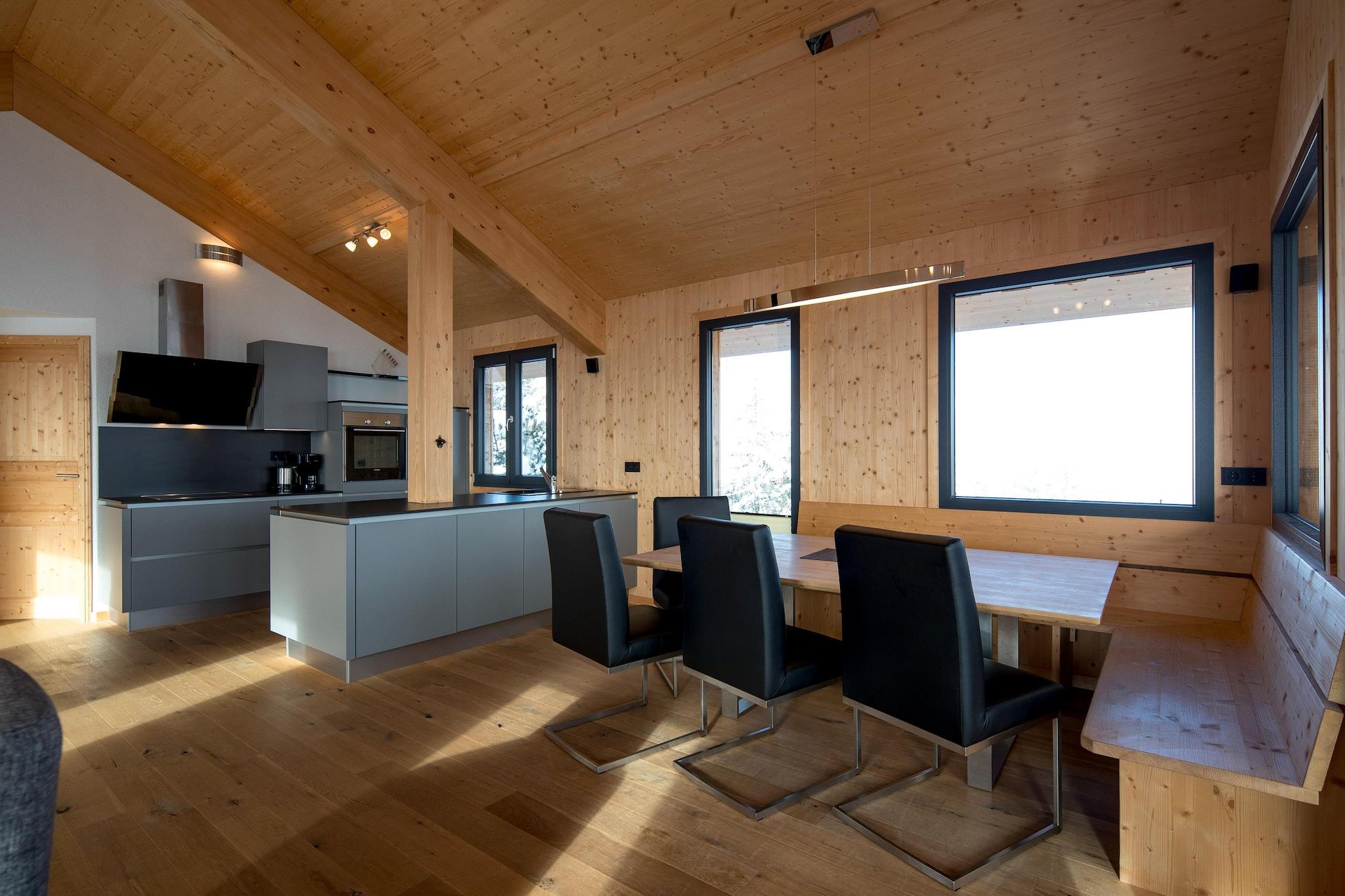 Velkommen til dit alpine tilbagetog - en smukt udformet træhytte beliggende i en fredfyldt fyrreskov på 1.800 meter over havets overflade. Denne hytte, der strækker sig over 120 m², rummer komfortabelt op til 10 gæster, hvilket gør den ideel til familiesammenkomster eller grupper af venner, der søger en bjergferie. Slap af i de tilvejebragte luksuriøse faciliteter, herunder en Sasha Mi-sauna for beroligende varme, et boblebad til et afslappende bad, og en udendørs jacuzzi tilgængelig efter anmodning og baseret på tilgængelighed, hvilket tilbyder et perfekt sted at stirre på stjernen eller nyde den friske bjergluft. Hold forbindelsen med gratis Wi-Fi, og nyd dine yndlingsprogrammer på satellit-tv. Hytten er ideelt beliggende kun 100 meter fra den frodige fyrreskov og 1 km fra den glitrende sø, hvilket giver både afsondrethed og bekvemmelighed. Hytten har fire soveværelser: tre med indbydende dobbeltsenge, og et med en dobbeltseng og en praktisk køjeseng, perfekt til børn eller ekstra gæster. Med tre velindrettede badeværelser er der rigelig plads og privatliv for alle. Det fuldt udstyrede køkken sikrer, at du har alt, hvad du behøver, inklusive bestik, køkkengrej, en keramisk kogeplade, ovn, opvaskemaskine og et køleskab med fryser. Yderligere væsentlige ting såsom en brødrister, kedel og kaffemaskine leveres også sammen med et lille startsæt med opvaskemaskiner, opvaskemiddel, en svamp, affaldsposer, rengøringsmidler og et viskestykke for at lette din ankomst. Med Butler Card eller Butler Program inkluderet, kan du nyde personlig service for at forbedre dit ophold. Oplev den perfekte blanding af rustik charme og moderne luksus i denne udsøgte træhytte, hvor naturlig skønhed og komfort forenes for at skabe en uforglemmelig flugt.