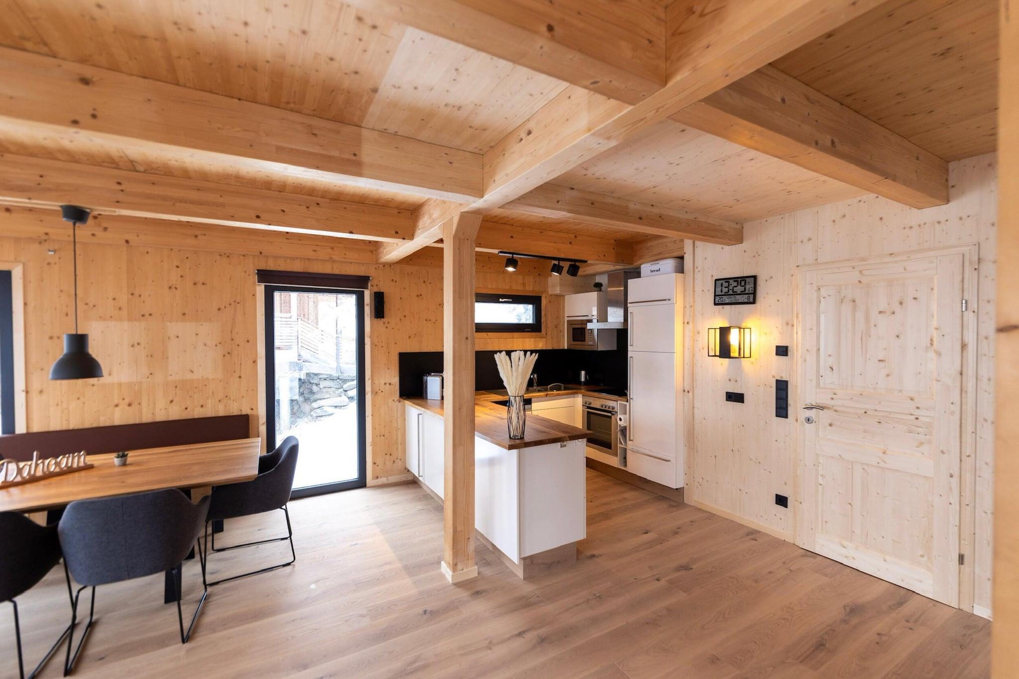 Velkommen til dit luksuriøse alpine tilflugtssted - en fantastisk hytte på 120 m² massivt træ, der lover en enestående oplevelse for op til 8 gæster. Beliggende i en fredfyldt fyrreskov 1.800 meter over havets overflade, tilbyder denne elegante hytte en perfekt kombination af traditionel charme og moderne forkælelse, hvilket gør det til et ideelt valg for en afslappende og eventyrlig ferie. Træd ud på balkonen for at nyde den friske bjergluft og maleriske udsigter. Forbedre dit ophold med luksuriøse faciliteter, herunder en finsk sauna, et overbærende boblebad og et udendørs spabad - perfekt til at slappe af efter en dag med udforskning af de fantastiske omgivelser. Hytten er perfekt beliggende til en række udendørs aktiviteter, herunder gåture, vandreture, skiløb og skøjteløb. Det er bekvemt beliggende nær skoven, centrum og søen, og tilbyder nem adgang til alle de lokale attraktioner. Hytten har fire smukt indrettede soveværelser: tre med plys dobbeltsenge og et med hyggelige køjesenge, der giver fleksible sovearrangementer for familier eller grupper. Med tre stilfulde badeværelser, hver udstyret med bruser, er der rigelig plads til, at alle kan forfriskes og slappe af. Det åbne køkken er fuldt udstyret med alt hvad du behøver for at tilberede måltider, med bestik, køkkengrej, en keramisk kogeplade, ovn, opvaskemaskine og et køleskab med fryser. Yderligere bekvemmeligheder omfatter en brødrister, elkedel og kaffemaskine. Kæledyr er hjerteligt velkomne, så du kan tage dine lodne venner med på dit eventyr. Hold forbindelsen med gratis Wi-Fi og nyd underholdning på satellit-tv Et lille startsæt med opvaskemaskiner, opvaskemiddel, en svamp, affaldsposer, rengøringsmidler og et viskestykke vil blive leveret til din bekvemmelighed ved ankomsten. Med Butler-kortet eller Butler-programmet inkluderet, vil du modtage personlig service for at forbedre dit ophold.