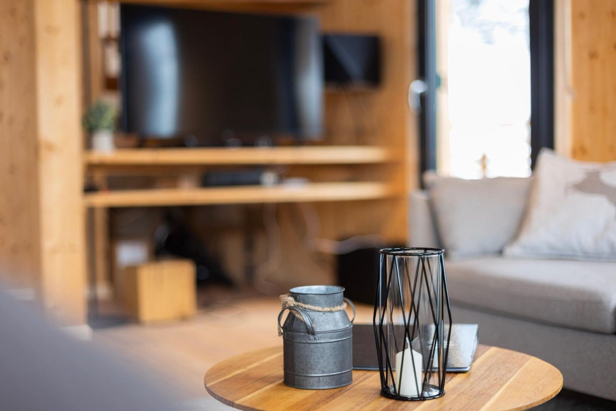 Luksuriøs hytte med udendørs spabad